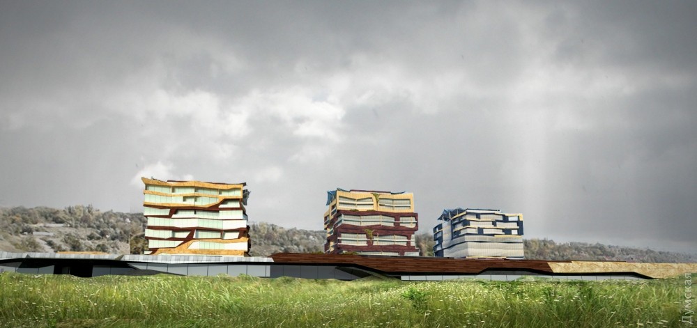 Объект возводится аккурат под строящимися тремя гостиницами, которые возводят с конца прошлого года. Строительством отельного нахалстроя изначально занималась компания «Комета-М», принадлежащая столичному бизнесмену Андрею Бондарцу. В свое время он перестраивал карпатскую резиденцию низложенного президента Украины Виктора Януковича. После заказчик работ поменялся — им стал столичный холдинг «Киевгорстрой». В октябре 2014 года Приморский районный суд Одессы удовлетворил административный иск застройщика к горсовету, отменив решение собрания, которым то отозвало свое «добро» на возведение отелей. Тем временем, в строящихся высотках уже продают апартаменты – квадратный метр стоит от 1300 долларов. В отельном комплексе будет 257 номеров. Проектом предусмотрено строительство подземного (да подземного, под склонами) автопаркинга, рассчитанного на 130 машиномест.