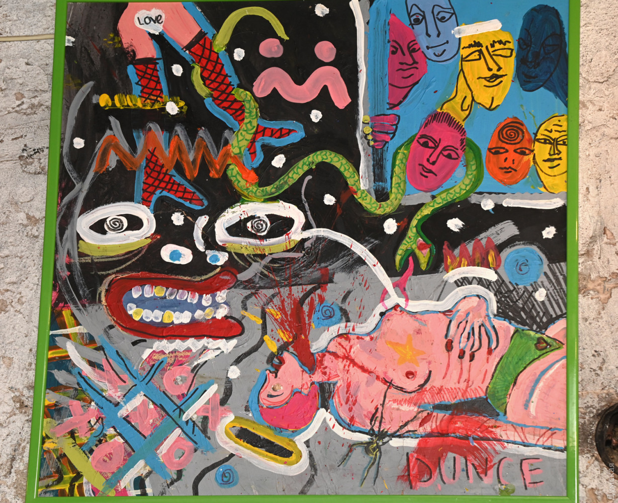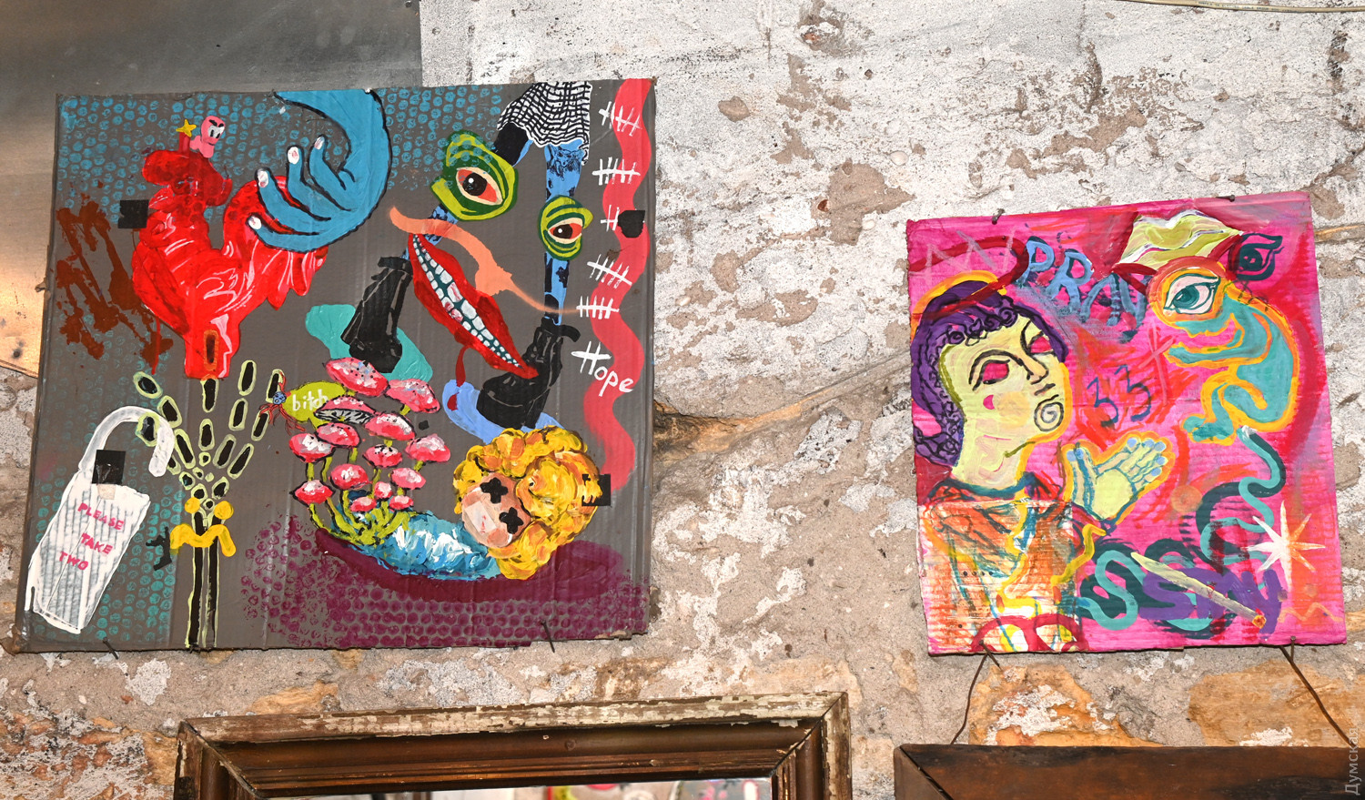 Гранж та гараж. Митець показав одеситам нестандартний живопис в незвичайному містіПерсональна виставка Гліба Мардеросьянца відкрилася під мостом Коцебу в Garage Gallery. Молодий художник з Харкова пише яскраво та емоційно. Роботи передають почуття та роздуми автора у різні періоди його життя. Персонажі картин Гліба часом весело конають, а якщо живі, то знаходяться в пошуках власної ідентичності (в тому числі статевої), опираються зовнішнім подразникам (пострілам, маніякам, злим собакам тощо). «Це не класичний живопис, це більше про гранж, трохи панку, а також невеличкі витівки та нестандартні техніки виконання», — пишеться в анотації до гаражної виставки. На вернісажі серед перших глядачів провели аукціон, єдиним лотом стала копія однієї з робіт на полотні з підписом автора. Автор — Ірен Адлер, фото Олександра Синельникова Помітили помилку? Виділяйте слова з помилкою та натискайте control-enter Новини по цій темі: 2 листопада 2025: «Амінь, і поїхали»: одеситам показали портрети відьом та козака-характерника (фото) 22 вересня 2025: Артист не може бути поза політикою: Dakh Daughters в Одесі розповіли про відьом, важкі міста і в який час краще жити 19 вересня 2025: Йому довірять робити раму для Караваджо: одеситам показали виставку литовського музейника |