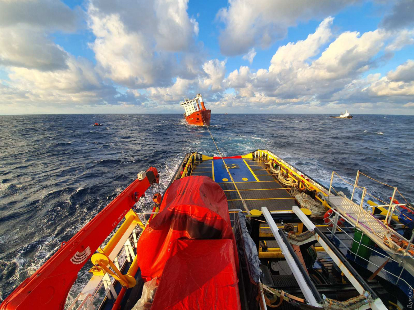 Греческие спасатели сумели взять на буксир терпящий у Лесбоса бедствие одесский сухогрузГреческие спасатели сумели взять на буксир принадлежащий одесской компании сухогруз NEW LEO (бывший AKVILE), который со вчерашнего дня терпел бедствие в Эгейском море. Ранее, напомним, греки сняли с судна экипаж — 14 граждан Украины (в основном одесситов). Как сообщили местные СМИ, сегодня утром команде спасателей удалось подняться на борт NEW LEO и завести буксирный конец. Сейчас судно тянет в безопасное место аварийно-спасательный буксир PANTOKRATOR. Напомним, балкер шел с грузом стали в турецкий Гемлик. Между островами Лесбос и Скирос он попал в шторм. В результате смещения груза судно опасно накренилось, и капитан был вынужден запросить помощь. Греческие власти выслали в район происшествия несколько кораблей и три вертолета, которые эвакуировали моряков. Их доставили в центр здоровья острова Скирос. NEW LEO был построен в 1997 году. Сейчас ходит под флагом Либерии, порт приписки Монровия. Дедвейт 5.820 тонн. Длина 103, ширина 16 метров. Судовладелец и оператор NEW LEO - компании NEW LEO LTD и ООО «Престиж». Они зарегистрированы в Одессе, на Люстдорфской дороге, 140а. СМЕРТЬ РОСІЙСЬКИМ ОКУПАНТАМ! Помітили помилку? Виділяйте слова з помилкою та натискайте control-enter |