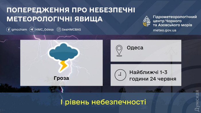 Гроза насувається на Одесу: синоптики оголосили штормове попередженняШтормове попередження через грозу оголосили в Одесі до кінця дня, 24 червня. Про небезпечні метеорологічні явища I рівня (жовтого) небезпеки повідомляють у Гідрометцентрі Чорного та Азовського морів. За даними синоптиків, погіршення погодних умов очікується в найближчі 1-3 години. Вітер південно-західний 7-12 м/с. Одеситів та гостей міста закликають бути пильними, обмежити пересування вулицями і не залишати автомобілі під деревами та лініями електропередач. Уже завтра, 25 червня, опадів не передбачається, але буде мінлива хмарність. Також в регіоні очікується надзвичайний рівень пожежної небезпеки. В області температура вночі +14+19°С, вдень місцями до +35°С. В Одесі +17+19°С вночі, а вдень стовпчики термометрів піднімуться до +26+28°С. Морська вода прогріється до +14+15°С. СМЕРТЬ РОСІЙСЬКИМ ОКУПАНТАМ! Помітили помилку? Виділяйте слова з помилкою та натискайте control-enter |
