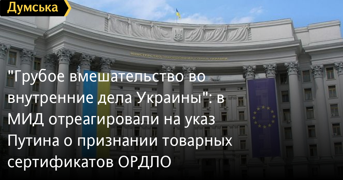 «Грубое вмешательство во внутренние дела Украины»: в МИД отреагировали на указ Путина о признании товарных сертификатов ОРДЛОПризнание РФ так называемых «сертификатов о происхождении товаров», которые выдаются на временно оккупированной территории Донецкой и Луганской областей, является грубым вмешательством во внутренние дела Украины. Соответствующее заявление обнародовало министерство иностранных дел Украины в ответ на подписанный 15 ноября президентом РФ Владимиром Путиным указ «О предоставлении гуманитарной поддержки населению отдельных районов Донецкой и Луганской областей Украины». Министерству иностранных дел РФ передана соответствующая нота протеста. «Рассматриваем подписание президентом Российской Федерации указа № 657 от 15 ноября 2021 г. о признании РФ так называемых «сертификатов о происхождении товаров», которые выдаются на временно оккупированной Россией части территории в Донецкой и Луганской областях, как грубое вмешательство во внутренние дела Украины, нарушение ее законодательства и норм международного права», — сообщает пресс-служба министерства. Как отмечают дипломаты, признание «сертификатов» и другие предусмотренные указом мероприятия ярко демонстрируют целенаправленную политику России по затягиванию временно оккупированных территорий нашего государства в свое экономическое, политическое, электоральное и информационное пространство. Отметим, подписанный указ предусматривает признание сертификатов о происхождении товаров, выданных незаконной «властью» так называемых «Л/ДНР» и допуск этих товаров на российский рынок. Подписание указа противоречит обязательствам России по Минским договоренностям и договоренностям в рамках Нормандского формата, считают в МИД. СМЕРТЬ РОССИЙСКИМ ОККУПАНТАМ! Заметили ошибку? Выделяйте слова с ошибкой и нажимайте control-enter |