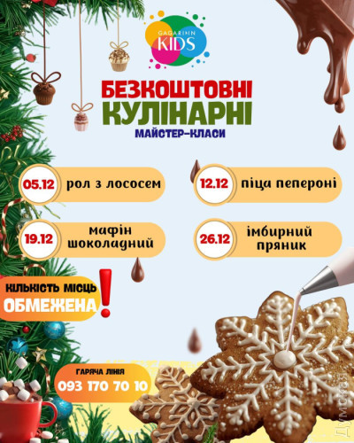 Грудень з Gagarinn Kids: діток запрошують на безкоштовні кулінарні майстер-класи (на правах реклами)Грудень у Gagarinn Kids буде неймовірно смачним та святковим! Запрошуємо діток на безкоштовні кулінарні майстер-класи, де кожен зможе створити власний зимовий смаколик. Розклад наступний: 05.12 – Рол з лососем Телефон гарячої лінії: 093 170 70 10 СМЕРТЬ РОСІЙСЬКИМ ОКУПАНТАМ! Помітили помилку? Виділяйте слова з помилкою та натискайте control-enter |