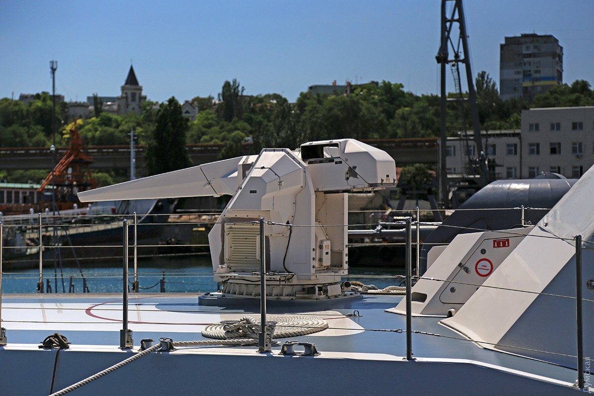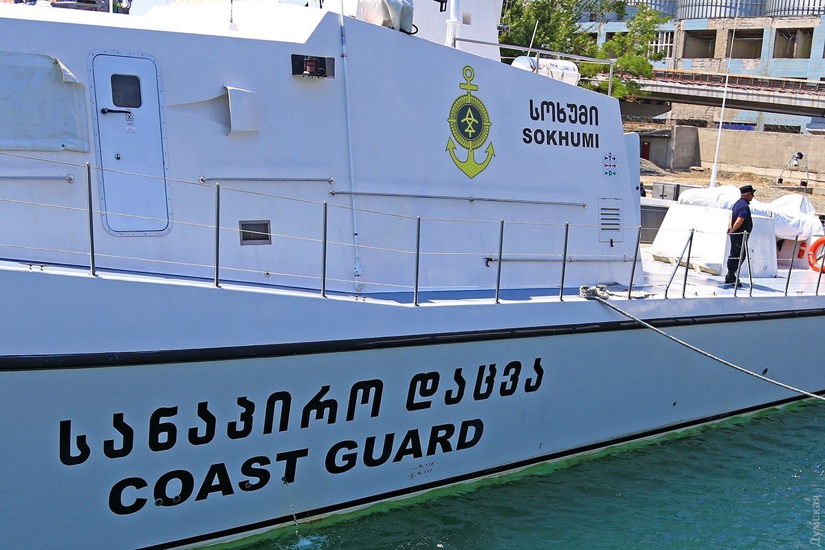 В международных учениях «Си Бриз-2017» принимают участие и грузинские моряки. Так, в западную базу ВМСУ зашел грузинский военный катер — P-24 «Сухуми». «Сухуми» был построен в Турции по грузинскому заказу и вошел в состав Департамента пограничной полиции в 2008 году. Катер имеет длину 36 метров и водоизмещение 120 тонн. Способен разгоняться до 47 узлов (почти 90 км в час). Экипаж 18 человек, из них 2 офицера. Сегодня утром все корабли покинули Одесский морской торговый порт и вышли на маневры, таким образом начав предварительную морскую фазу учений. Фото Сергея Смоленцева
