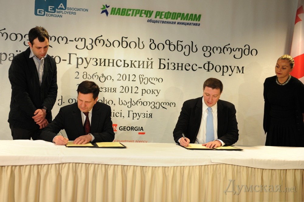В частности, одесская делегация посетила Тбилисский таможенный терминал, где срок прохождения всех процедур занимает от 15-ти минут до одного часа. Грузовладельцам достаточно предоставить лишь два документа – маршрутный лист и документ купли-продажи товара. Также бизнесменам из Украины продемонстрировали работу самого успешного административного проекта в Грузии – Дома юстиции. Это учреждение, где любую справку или оформить любой документ – от загранпаспорта до свидетельства о регистрации фирмы – можно максимум за полторы минуты. «Мне интересно, что нужно сделать, чтобы такие кардинальные изменения в экономике и управленческом аппарате произошли в Украине не за пятьдесят лет, как на Западе, а за пять-семь лет, как в Грузии. Это очень для нас важно», – подчеркнул в ходе визита мэр Одессы Алексей Костусев. Во время поездки между муниципалитетами Одессы и Тбилиси было заключено соглашение о развитии партнерских отношений. Достигнуты также первые договоренности об одесских инвестициях в грузинское виноделие и тбилисских капиталовложениях в городское строительство Одессы. Напомним, в начале марта в Тбилиси отправилась группа из 80-ти украинских бизнесменов – представителей сфер строительства, архитектуры, сельского хозяйства, торговли, рекламного бизнеса, IT и медицины. Возглавлял делегацию мэр Одессы Алексей Костусев. Целью поездки было детальное знакомство с опытом грузинских реформ и налаживание прямых бизнес-контактов.
