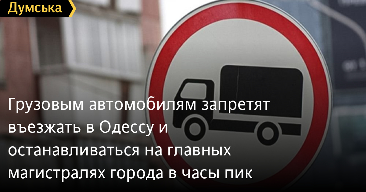 Грузовым автомобилям запретят въезжать в Одессу и останавливаться на главных магистралях города в часы пикОграничить в утренние и вечерние часы пик въезд в Одессу грузовых автомобилей и запретить им останавливаться в это время на главных транспортных магистралях города планирует мэрия Одессы. Такой проект решения рассмотрит на ближайшем заседании исполком горсовета. Согласно нему, муниципальный департамент транспорта, связи и организации дорожного движения и коммунальное учреждение СМЭП должны разработать «новые схемы организации дорожного движения для: просп. Добровольского, ул. Семена Палия, Южной дороги, Николаевской дороги, ул. Черноморского казачества, ул. Атамана Головатого, ул. Водопроводной, ул. Краснова, ул. Небесной Сотни, ул. Преображенской, ул. Ришельевской, ул. Пушкинской», предусмотрев в них «ограничения въезда и запрет остановки и стоянки грузовых автомобилей с разрешенной максимальной массой более 3,5 тонн в рабочие дни с 7:00 до 10:00 и с 17:00 до 20:00». Эти схемы согласуют с управлением патрульной полиции, после чего СМЭП установит на перечисленных улицах соответствующие знаки. СМЕРТЬ РОССИЙСКИМ ОККУПАНТАМ! Заметили ошибку? Выделяйте слова с ошибкой и нажимайте control-enter |