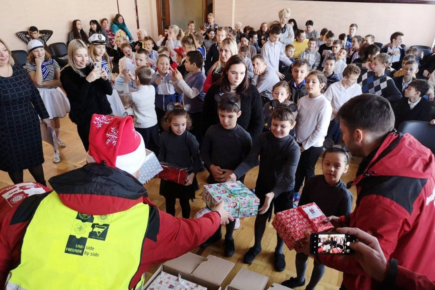 Вручение подарков состоялось в Одесском городском центре социальных служб для семьи, детей и молодежи. Волонтеры Рождественского конвоя передали поздравления от детей Германии юным одесситам из социально незащищенных семей, детям с инвалидностью из домов-интернатов и специализированных учебных заведений, детям льготных категорий, которые находятся на учете в учреждениях социальной защиты.