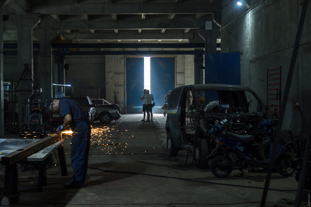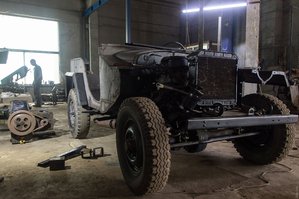 Спекотний, залитий полуденним сонцем стародавній Акерман. З початком повномасштабної війни це сонне містечко, здається, стало ще спокійнішим. Але це лише на перший погляд заїжджого журналіста. Підозрюю, що і сьогоднішня Одеса здасться туристові незвично безлюдною та тихою. Білгород-Дністровський район — один із найбільш обстрілюваних в області, і про війну місцеві мешканці знають не з чуток. З перших днів вторгнення у місті було створено підрозділ територіальної оборони, багато жителів стали волонтерами. Кореспондент «Думської» побував на підприємстві Steel Tec Group, або, як його називає уродженець Білорусі, волонтер Сергій Щербаков – у «гаражі». Тут поставлено на потік апгрейд цивільних автомобілів для потреб армії. Зараз у роботі «гаража» п'ять автомобілів, а найперша – перетворена на Gun truck «Волга» – вже брала участь в автопробігу з нагоди Дня державного прапора та звільнення Білгорода-Дністровського від румунських окупантів. Але про все по порядку. У цеху вирує робота: на металевому столі робітники варять стовпи освітлення для якоїсь бази відпочинку. За словами Сергія Щербакова, останні кілька тижнів економіка регіону почала оживати і у підприємства нарешті з'явилося перше цивільне замовлення. До цього всі потужності були спрямовані на допомогу армії. «До початку воєнних дій ми співпрацювали з місцевою військовою частиною, робили їм ворота, хвіртки, – розповідає Сергій. — 27 лютого я зв'язався з командиром частини і запитав, яка потрібна допомога. У результаті ми буквально дні три-чотири простояли, привезли назад обладнання та почали варити протитанкові їжаки, буржуйки, засоби примусової зупинки, мішені для стрільбища – 90% інженерних конструкцій Білгорода-Дністровського зробили наші хлопці. Потім почали бронепластини робити — волонтери десь роздобули болванки перетином 30 см та 2,5 м завдовжки. Ми їх пилили по вісім міліметрів, гартували і возили на відстріл. За якістю виявилися п'ятого класу. Двісті пластин зробили, але потім це затихло. Уряд та волонтери налагодили масові постачання професійної амуніції з Європи». По цеху розосереджені автомобілі в різній стадії розібраності: біля великого вікна 403-й «Москвич» кольору небесної лазурі, трохи далі сірий та брутальний ГАЗ-67 та два старі дизельні мерседеси. Усі вони після модернізації стануть бойовими машинами для підрозділів Збройних сил та волонтерів. Першим дітищем «гаража» став справжнісінький Gun truck – монструозний пікап, оснащений великокаліберним кулеметом КПВТ, що ніби зійшов з екрану фільму «Дорога люті», тільки не чорний, а болотяного камуфляжного кольору. Колишня «Волга», ГАЗ-24, виявилася непоганою основою для бойового автомобіля. Бабусю розшукали на місцевому штрафмайданчику, де він іржавів з 2017-го року. «Вона єдина опинилася у повній комплектації, – згадує Сергій. – Конструктив ми особливо не чіпали, підняли колісну базу, збільшили дорожній просвіт до 40 см, підсилили підвіску. Хотіли зробити легкий, маневрений автомобіль, а вийшов практично броньовик. Підняли борти і обварили їх бронепластинами, що лишилися». Турель, здатна витримати на собі великокаліберний кулемет і, що ще важливіше, компенсувати його віддачу, спроектована та зібрана співробітниками Steel Tec Group із заднього мосту легковика. На модернізацію «Волги» пішло шість тижнів, та й то тільки тому, щ
