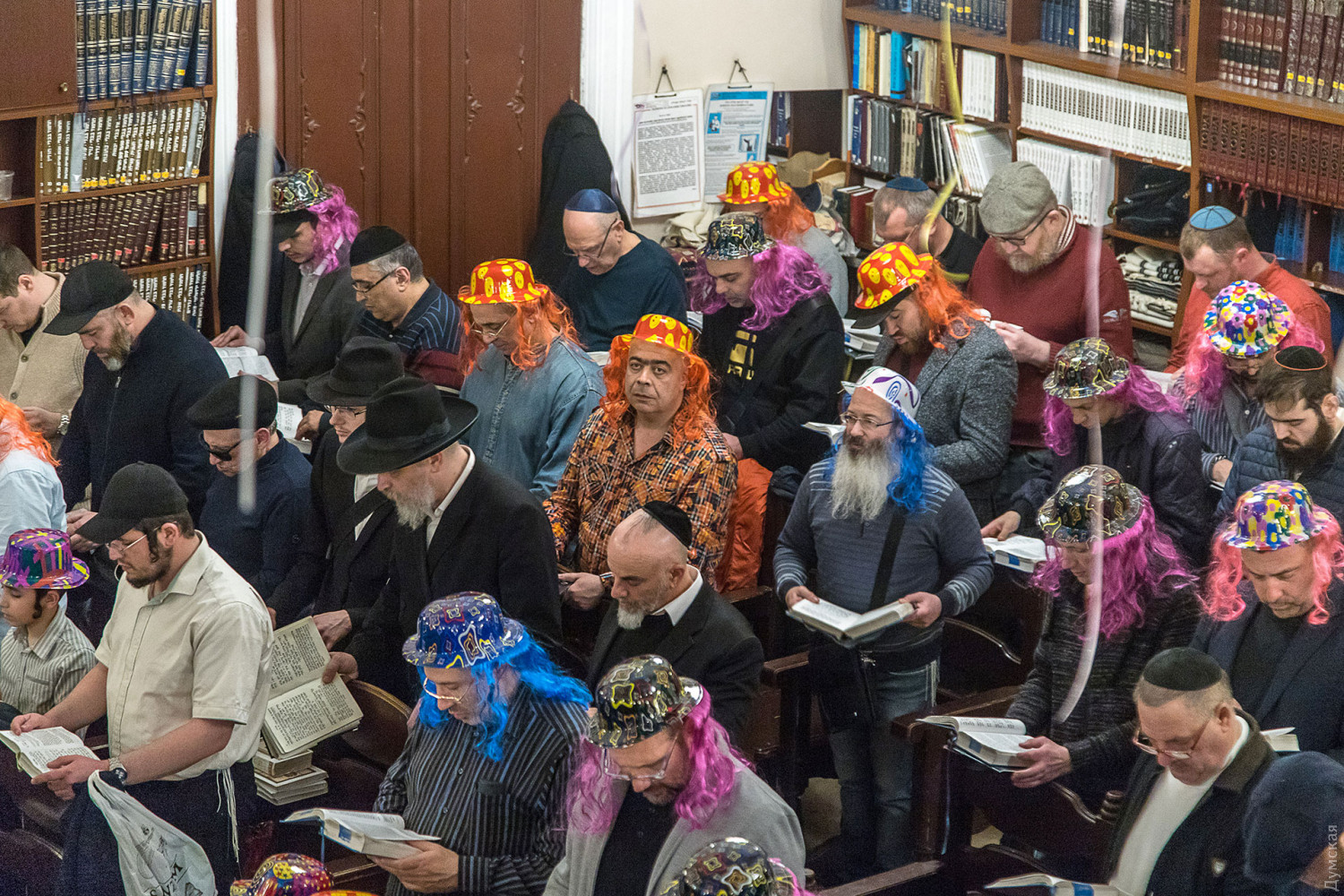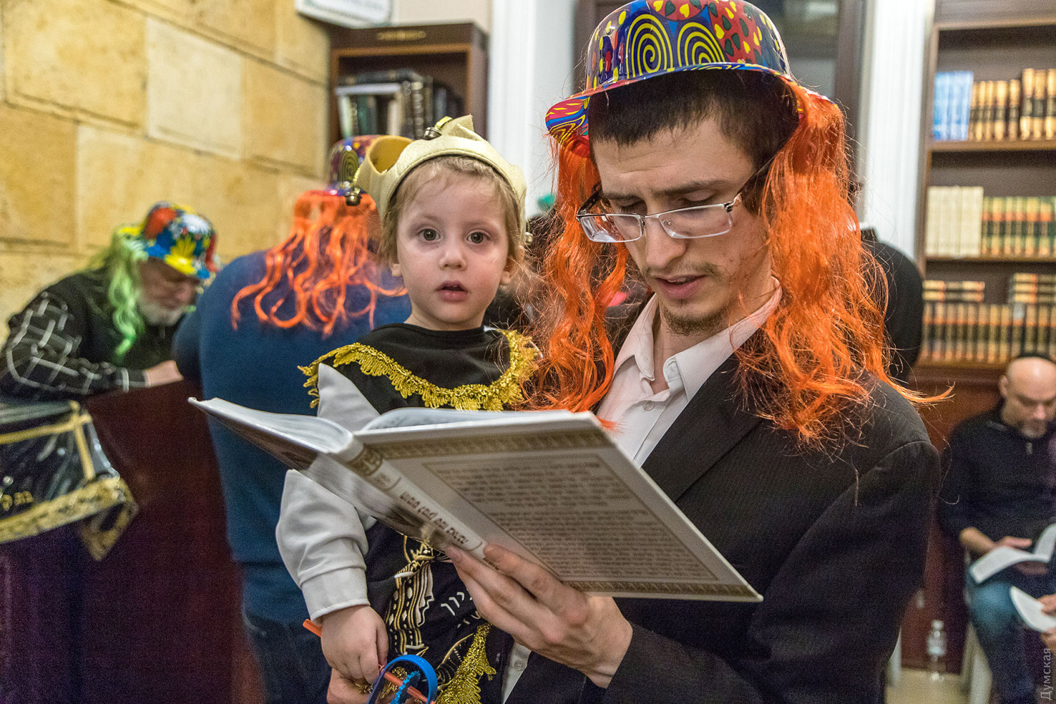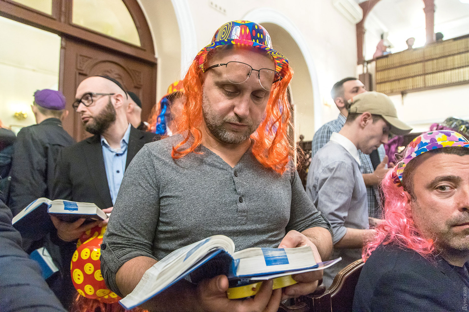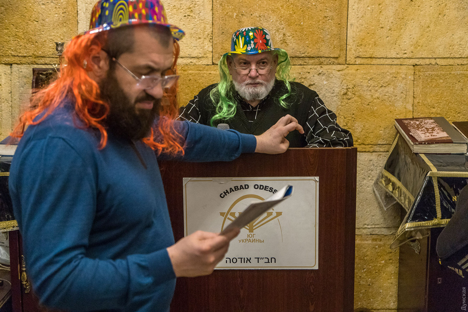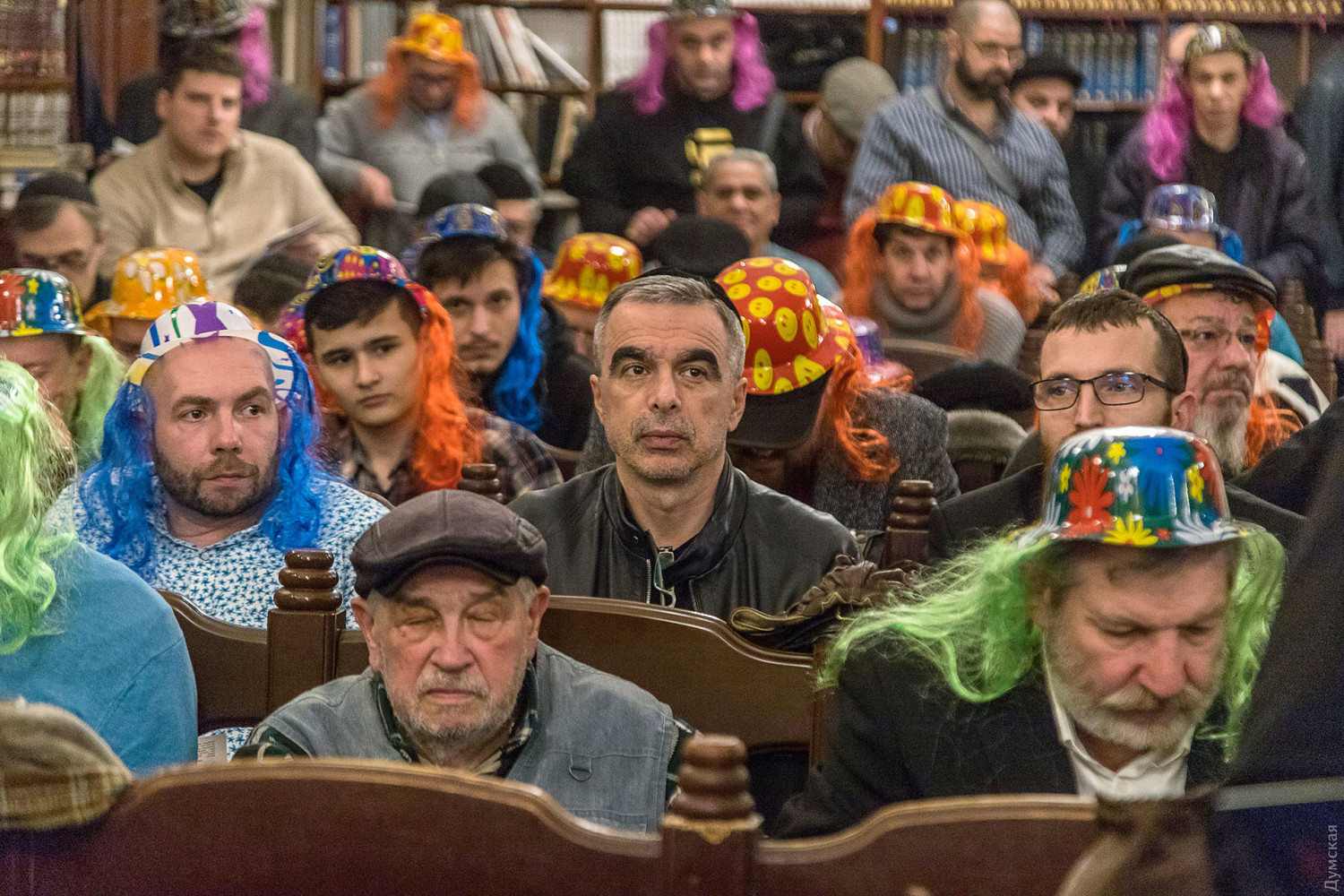 В молитвенном доме общины «Хабад Шомрей Шабос» на Осипова готовится что-то веселое. Это видно еще на подходе, ведь одесские евреи стекаются к синагоге, облаченные в карнавальные костюмы. Убеленные сединами бородатые мужи, не стесняясь, надевают смешные шляпы с разноцветными волосами. Подростки выбирают образы из современных ужастиков, а малыши, будто пришли на утренник. Сегодня евреи отмечают самый веселый праздник в году, Пурим — день, когда еврейскому народу, населявшему часть территории Персидской империи, удалось избежать полного истребления от рук злобного Амана, «премьер-министра» персидского царя Артаксеркса I. В память об этом дне верующие евреи всего мира устраивают публичные чтения свитка Есфири (одна из книг Танаха), раздают друг другу подарки и усаживаются за праздничный стол, угощаясь и выпивая. Празднование начинается с чтения свитка, в котором описываются подробности чудесного спасения иудеев. В момент произнесения имени Амана присутствующие начинают кричать, топать и крутить специальные трещотки, чтобы заглушить звуки ненавистного имени. В этот день каждый верующий еврей должен напиться так, чтобы не различать, произносит ли он проклятия Аману или благословения Мордехаю (спасителю еврейского народа). Из публичных персон мы заметили на праздновании Григория Гриншпуна, Викторию Вугельман и бизнесмена Вадима Черного. СМЕРТЬ РОСІЙСЬКИМ ОКУПАНТАМ! Помітили помилку? Виділяйте слова з помилкою та натискайте control-enter |