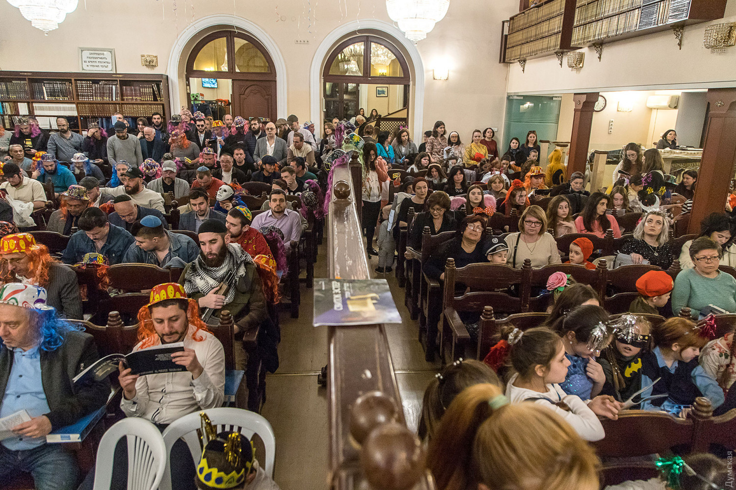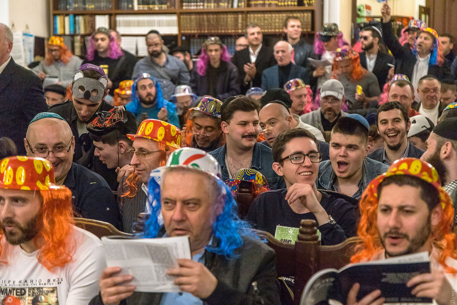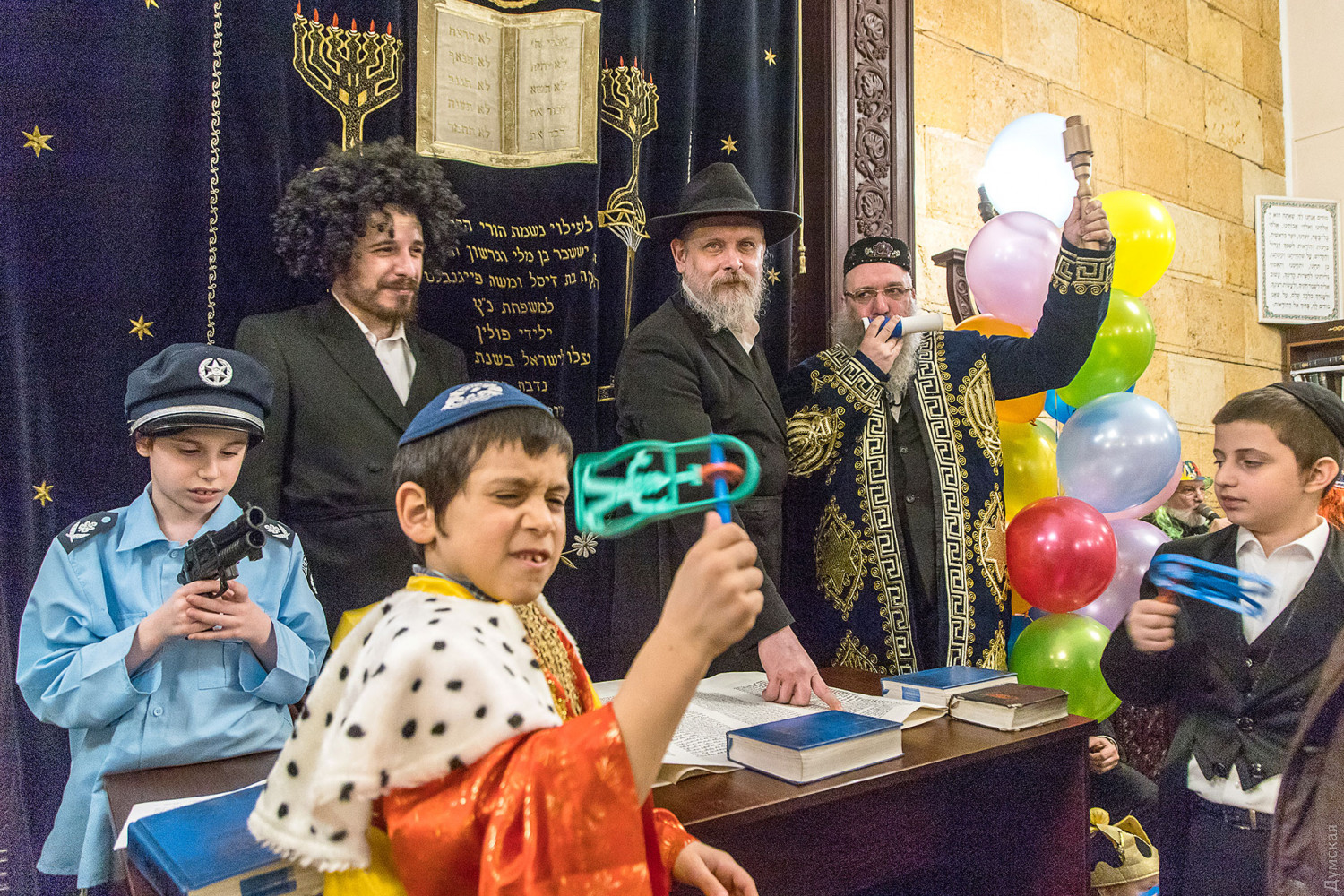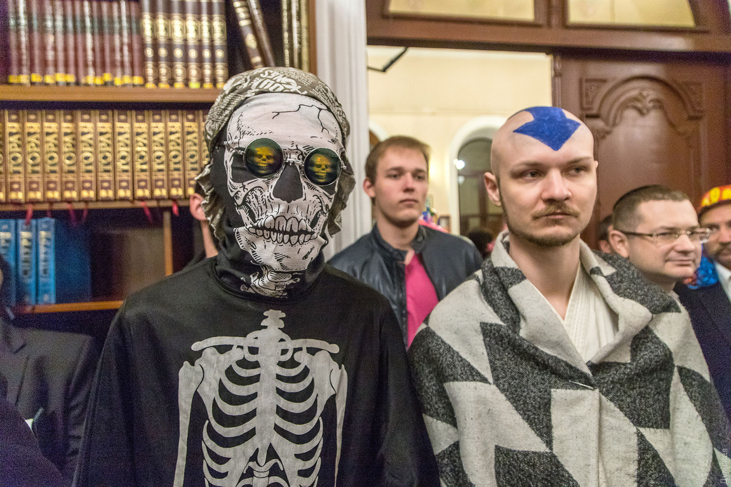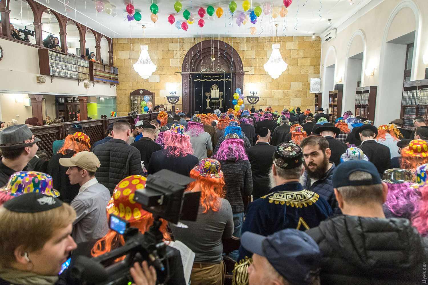 В молитвенном доме общины «Хабад Шомрей Шабос» на Осипова готовится что-то веселое. Это видно еще на подходе, ведь одесские евреи стекаются к синагоге, облаченные в карнавальные костюмы. Убеленные сединами бородатые мужи, не стесняясь, надевают смешные шляпы с разноцветными волосами. Подростки выбирают образы из современных ужастиков, а малыши, будто пришли на утренник. Сегодня евреи отмечают самый веселый праздник в году, Пурим — день, когда еврейскому народу, населявшему часть территории Персидской империи, удалось избежать полного истребления от рук злобного Амана, «премьер-министра» персидского царя Артаксеркса I. В память об этом дне верующие евреи всего мира устраивают публичные чтения свитка Есфири (одна из книг Танаха), раздают друг другу подарки и усаживаются за праздничный стол, угощаясь и выпивая. Празднование начинается с чтения свитка, в котором описываются подробности чудесного спасения иудеев. В момент произнесения имени Амана присутствующие начинают кричать, топать и крутить специальные трещотки, чтобы заглушить звуки ненавистного имени. В этот день каждый верующий еврей должен напиться так, чтобы не различать, произносит ли он проклятия Аману или благословения Мордехаю (спасителю еврейского народа). Из публичных персон мы заметили на праздновании Григория Гриншпуна, Викторию Вугельман и бизнесмена Вадима Черного. СМЕРТЬ РОСІЙСЬКИМ ОКУПАНТАМ! Помітили помилку? Виділяйте слова з помилкою та натискайте control-enter |