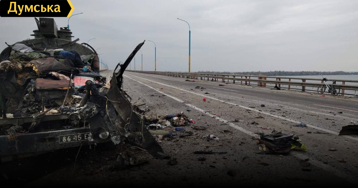 Разбитая российская техника на Антоновском мосту. Фото местного жителя