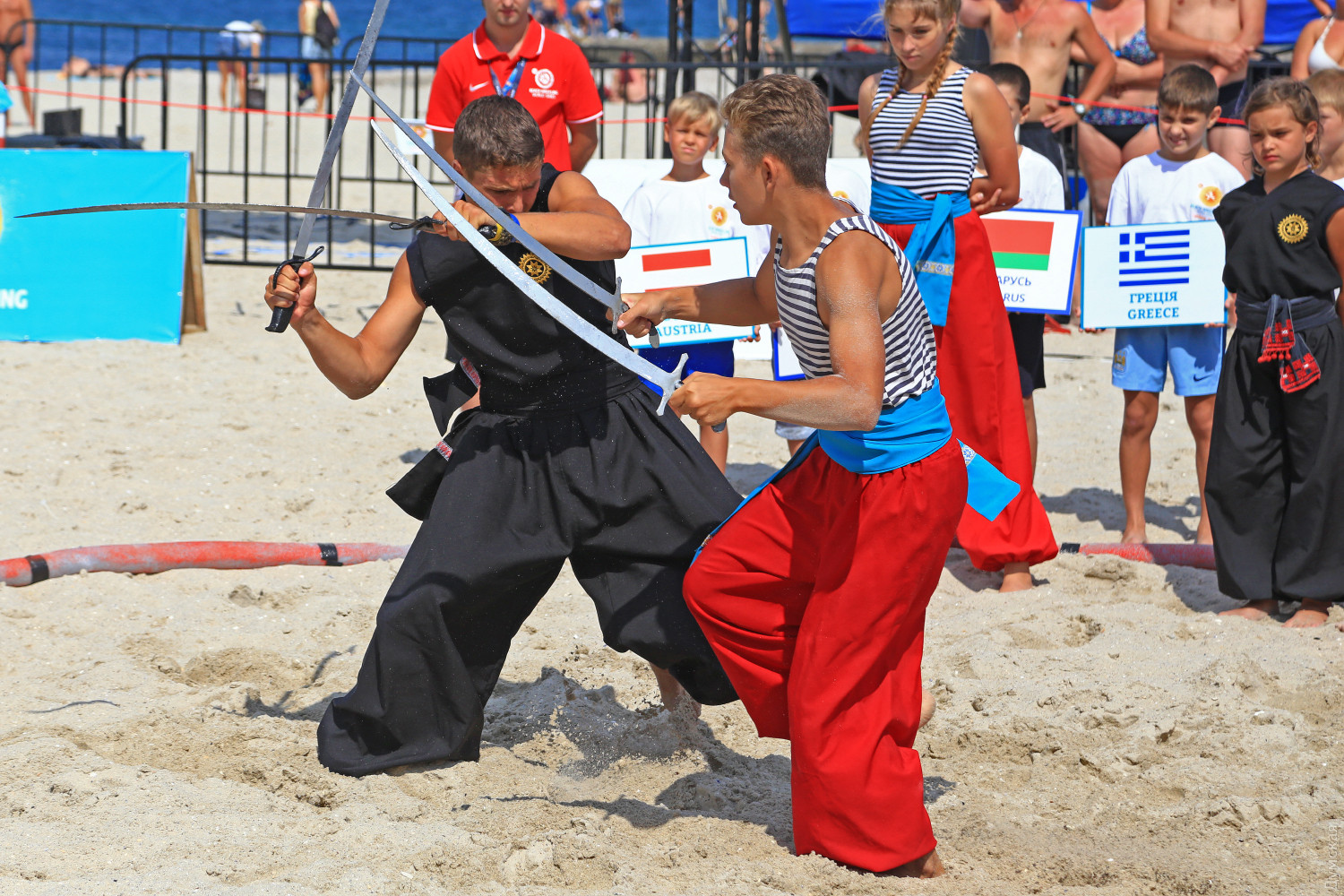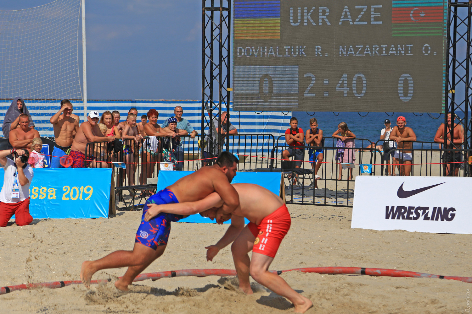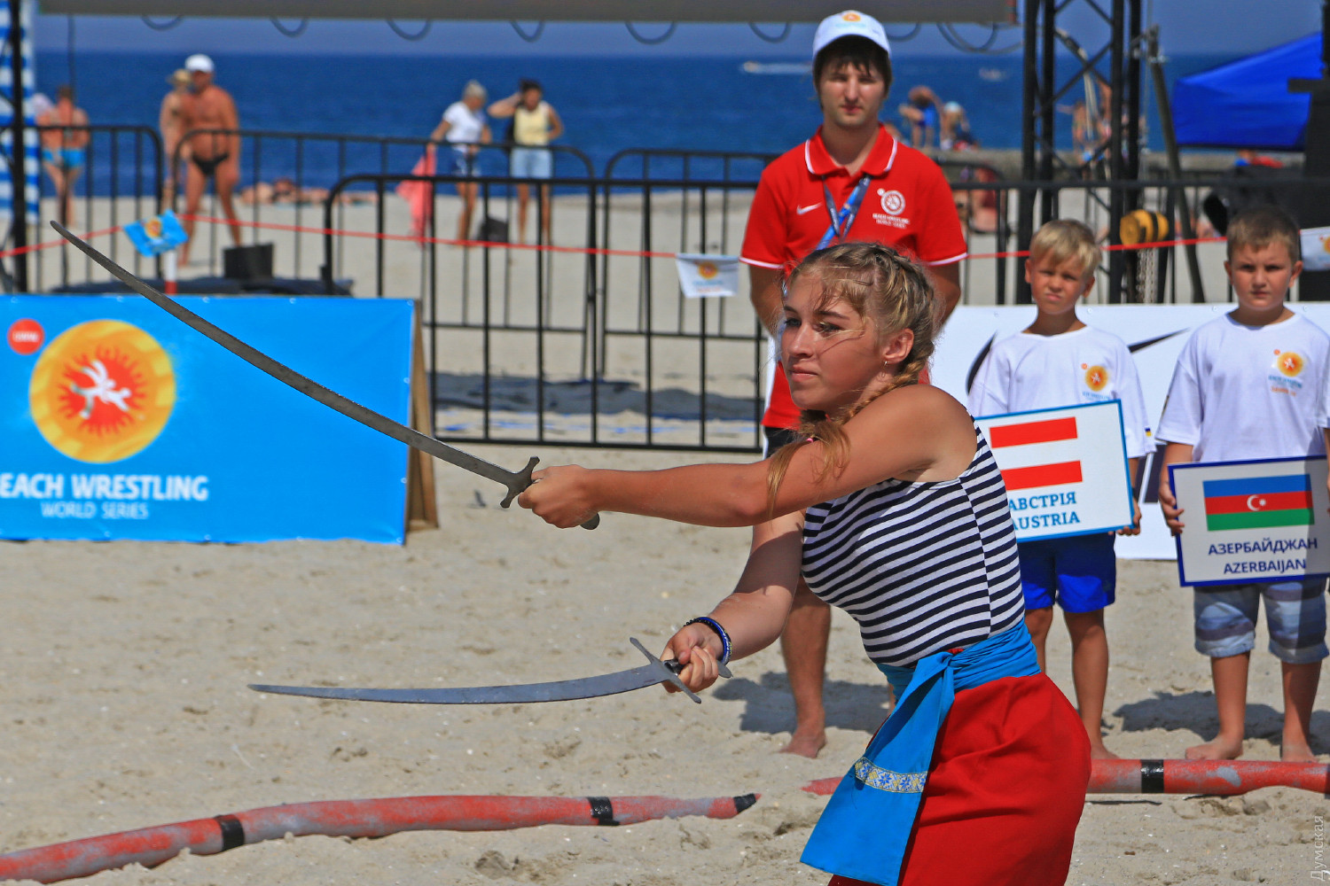 Хлеб-соль, боевой гопак и слезы: в Одессе прошел этап мировой серии по борьбе на пескеСегодня в одесском Центре пляжных видов спорта прошел третий этап мировой серии Beach Wrestling World Series среди взрослых. 54 спортсмена из 14 стран, в том числе 22 девушки, боролись за звание лучших в своих весовых категориях, передает корреспондент «Думской». Соревнования должны были начаться 9 августа, но непогода внесла свои коррективы, поэтому состязания проходят по ускоренной программе. На открытии присутствовали представители Международного олимпийского комитета United World Wrestling, президенты Федераций панкратиона, грэпплинга, вольной и пляжной борьбы. Иностранным организаторам турнира дали отведать традиционный украинский хлеб с солью, а одесские юноши и девушки из клуба боевого гопака «Шторм» дали мастер-класс по украинскому боевому искусству. Спортсмены соревновались в четырех весовых категориях. Мужчины — 70, 80, 90 и 90+кг, женщины — 50, 60, 70 и 70+. Особенно острая борьба развернулась у мужчин в весовой категории 70 кг. Украинцы изначально считались фаворитами в этом весе, но бои были очень острыми. После поединка с украинцем Егором Мурадяном, спортсмен из Кыргызстана Сырагуль Жусупов проиграл и не смог сдержать слез отчаяния. А победил в этой весовой категории наш соотечественник Семен Радулов, выигравший в финале у американца Тимоти Аллена. Егор Мурадян стал третьим. В весовой категории 80 кг также первенствовали украинцы — чемпионом стал Сергей Пономаренко, серебро взял Василий Михайлов, а бронзу грек Георгиос Кулучидис. Спортсмен из Молдовы Петр Янулов первенствовал в весовой категории 90 кг, вторым стал украинец Виктор Соловьев. В весе 90+ чемпионом стал азербайджанец Оян Назариани, а украинцы Роман Довхалюк и Махамед Закарьев встали на вторую и третью ступеньку пьедестала соответственно. В пляжной борьбе среди женщин почти во всех весовых категориях первенство было за украинками. В пятидесятикилограммовой номинации весь пьедестал был наш, а победила Катерина Машкевич. В категориях 60 и 70 кг наши девушки также заняли все ступеньки — в 60 кг первенствовала Валерия Симонкина-Златова, а в 70-ти Анна Мазуркевич. И только в весе 70+ победила гречанка Айкатерини Эйрини Пицява, второй стала украинка Галина Ковалевская, третьей норвежка Катрин Фрилсет. Завтра на пляже 14 станции Фонтана пройдет Чемпионат мира по пляжной борьбе среди кадетов и юниоров. СМЕРТЬ РОССИЙСКИМ ОККУПАНТАМ! Заметили ошибку? Выделяйте слова с ошибкой и нажимайте control-enter |