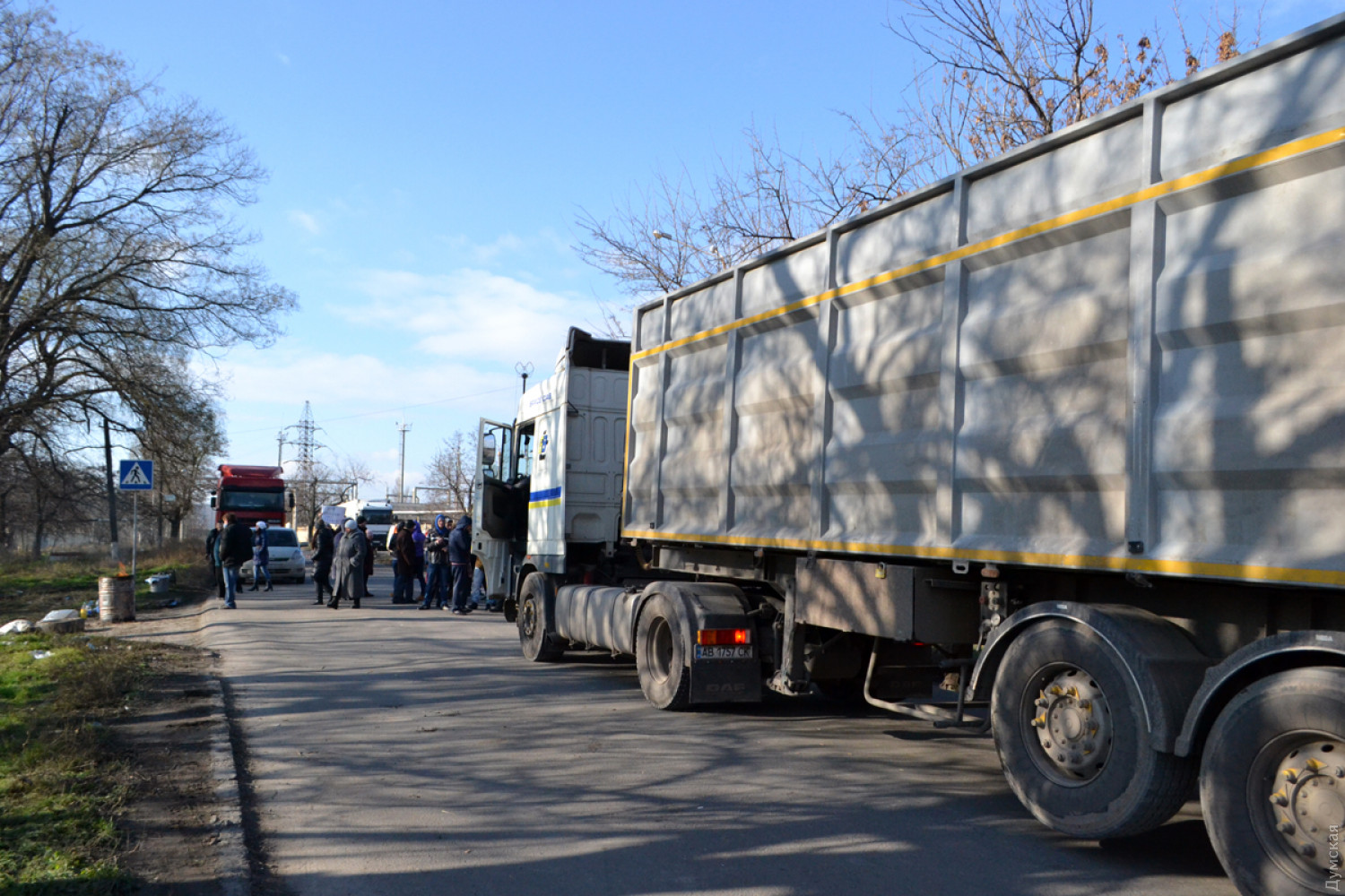 Жители микрорайона «Шкодова гора», что возле Одесского НПЗ, вторые сутки перекрывают одноименную улицу, по которой едут на «Евротерминал» («Сухой порт» Одесского морпорта) грузовые автомашины.