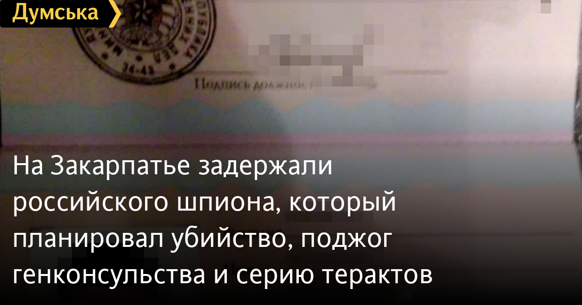 На Закарпатье задержали российского шпиона, который планировал убийство, поджог генконсульства и серию терактовСерию терактов предотвратила Служба безопасности в приграничном районе Закарпатской области. Как сообщает пресс-центр СБУ, злоумышленники планировали поджечь генконсульство соседней страны и убить общественного деятеля. «Участники подрывной деятельности пытались совершить теракты для дестабилизации общественно-политической ситуации в регионе и дискредитации Украины на международной арене», — сообщают в СБУ. По данным следствия, организатор преступлений скрывается в России. Это — уроженец Луганской области, которого завербовали спецслужбы РФ для проведения разведывательно-подрывной деятельности против госбезопасности Украины. Он планировал поджечь дипломатическое учреждение, несколько автомобилей с иностранной регистрацией и повредить исторический памятник на территории Закарпатья. Установлено, что злоумышленник подыскивал киллера для убийства местного общественного деятеля. Он предлагал за это 30 тыс. долларов. Также российский шпион собирал и передавал спецслужбам РФ секретные сведения о военных объектах в регионе. Уголовное производство открыто по ч. 1 ст. 111 (госизмена), ч. 2 ст. 15, ч. 2 ст. 258, ч. 1 ст. 14, ч. 2 ст. 258 (теракт) УК Украины.