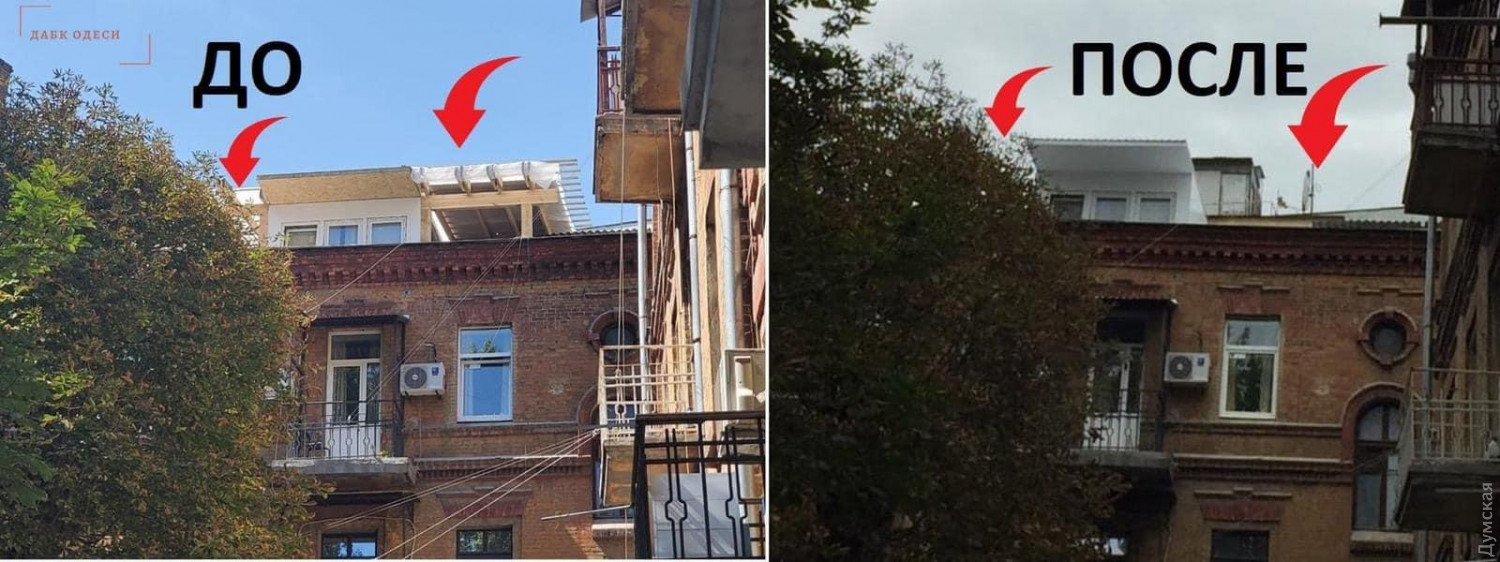 Хозяин квартиры в одесском памятнике архитектуры снес нахалстрой на крыше, предварительно его узаконивВ центре Одессы собственник квартиры снес часть незаконной надстройки на крыше дома-памятника архитектуры по Торговой, 8. Об этом сообщил и.о. начальника муниципального ГАСКа Александр Авдеев. По этому адресу находится еще один доходный дом Руссова, построенный в начале XX века. Как сообщили в ГАСКе, собственник квартиры на последнем этаже решил увеличить свою жилплощадь за счет крыши. В конце сентября хозяин квартиры легализовал свою пристройку и зарегистрировал право собственности на квартиру площадью 90,1 кв.м., хотя до инвентаризации она составляла 41,4 кв.м. «Самое интересное, что на бумаге «курятник» на крыше уже «построен». И, как всегда, портить наш город помогли «черные регистраторы», — сообщил чиновник. Отметим, что часть крышных конструкций все еще виднеется на снимке, предоставленном Авдеевым. Как заверяет чиновник, за спасением дома он обратился во всевозможные инстанции, в том числе — прокуратуру Одесской области. СМЕРТЬ РОСІЙСЬКИМ ОКУПАНТАМ! Помітили помилку? Виділяйте слова з помилкою та натискайте control-enter