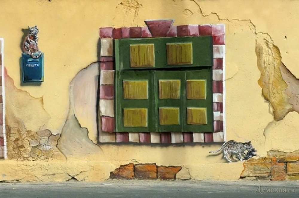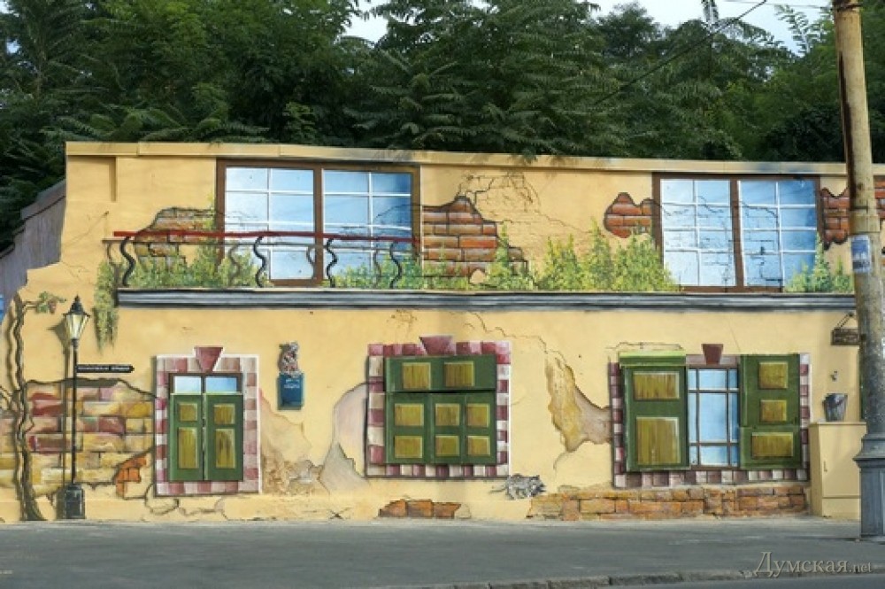 Мастера уличной живописи преобразили фасад заброшенного дома №17 на улице Белинского, который многие годы уродовал площадь возле театра Музкомедии. В произведение искусства обшарпанную стену превратила студия Peach (Stanislava L и Алексей Шкурат), сообщили в мэрии. При работе над фасадом художники использовали уже знакомый одесситам прием – некоторые элементы картины нарисованы, а некоторые настоящие. Отличить первые от вторых можно лишь при ближайшем рассмотрении.