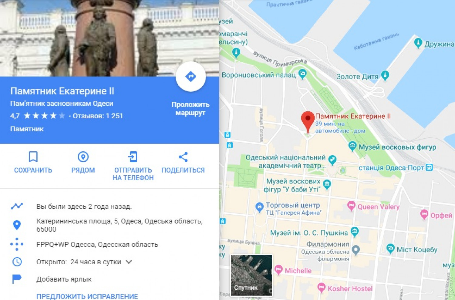 Наши читатели заметили, что на картах Google изменилось название некоторых объектов в Одессе, что вызвало немало вопросов. Так, памятник основателям Одессы «переименовали» в памятник Екатерине II, Таировское кладбище в «Таировское кладбище имени Геннадия Труханова», а пляж Подоляк стал пляжем «Подоляк Жаворонкова». Конечно, это не настоящее переименование, а дело рук интернет-хулиганов. Объекты сохраняют прежние названия, а Google, благодаря бдительности горожан, скоро исправится.