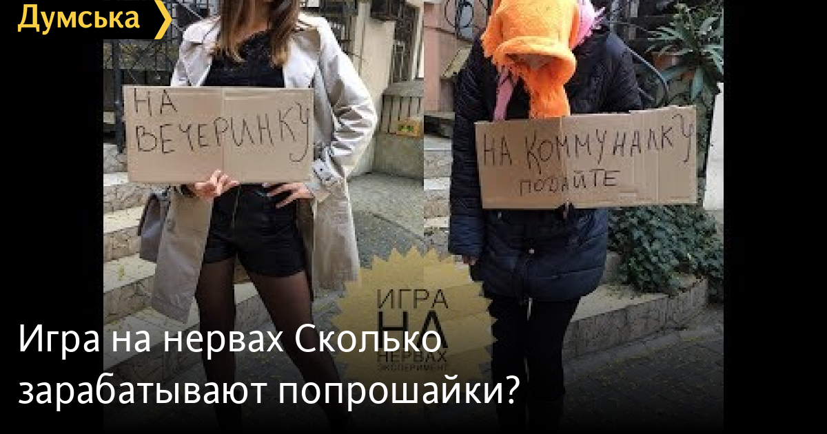 вышла на улицы города с просьбой о материальной помощи. Две разные роли — гламурная девица/ пенсионер. Кому помогут больше, смотрите в новом выпуске! СМЕРТЬ РОССИЙСКИМ ОККУПАНТАМ! Заметили ошибку? Выделяйте слова с ошибкой и нажимайте control-enter Думская ТВ. Игра на нервах: