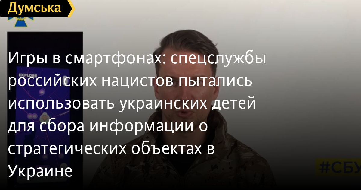 Игры в смартфонах: спецслужбы российских нацистов пытались использовать украинских детей для сбора информации о стратегических объектах в УкраинеСпецслужбы нацистской россии разоблачила СБУ на использовании игр в смартфонах для вербовки украинских детей. Об этом сообщает пресс-центр Службы безопасности Украины. Речь идет об одном из приложений, используя которое, участники должны искать некие виртуальные призы, а затем — обменять на электронные деньги. При прохождении маршрута дети должны фиксировать на фото местность, объекты военной и критической инфраструктуры на территории разных населенных пунктов. Выяснилось, что администрирует данное приложение IT-компания, подконтрольная спецслужбам рф. Таким образом, враг использовал украинских детей без их ведома для сбора информации о расположении стратегически важных объектов. В частности, в Кировоградской области были задержаны два подростка, которые фотографировали блокпосты, элеваторы и транспортные пути. СМЕРТЬ РОСІЙСЬКИМ ОКУПАНТАМ! Помітили помилку? Виділяйте слова з помилкою та натискайте control-enter |