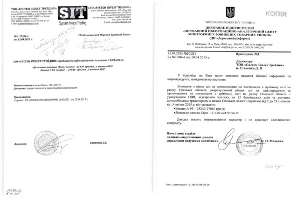 Ильичевский порт обвинили в закупке топлива по завышенной цене. Портовики опровергаютИздание «Наші гроші» обнародовало договор между Ильичевским морским торговым портом и ООО «Систем инвест трейдинг» на поставку бензина и дизтоплива на сумму 148,29 млн грн. Журналисты называют цену завышенной, а в порту заявляют, что получили топливо совсем по другим ценам. Как отмечает издание, ООО «Систем инвест трейдинг» выигрывает сотни миллионов гривен на поставку топлива для государственных портов с конца 2014 года. «Назвать эти цены просто высокими будет кощунством. Они — слишком высокие. Сейчас оптовые цены на дизтопливо составляют около 20 тыс грн, 95-й бензин идет по 24 тыс грн. То есть переплата — почти половина, — говорится в статье. — Портовики начинали свой тендер в феврале, когда коммерческий курс доллара был больше 35 гривен. Однако он не имел никакого отношения к тендеру». В пресс-службе Ильичевского порта пояснили, что в феврале 2015 года в связи с нестабильной ситуацией в Украине комитетом по конкурсным торгам порта было принято решение по определению порядка изменения цены договора в зависимости от изменения курса национальной валюты. «Как и предусматривалось документацией конкурсных торгов, в договоре зафиксирован порядок изменения цены договора в зависимости от изменения курса национальной валюты и предусмотрена необходимость предоставления ООО «Систем инвест трейдинг» справки, выданной «Государственным информационно-аналитический центром мониторинга внешних товарных рынков» или другим соответствующим государственным учреждением не ранее дня получения поставщиком заявки от покупателя. Фактически поставка по договору состоялась с 17 по 27 апреля 2015 года на основании заявки на поставку дизельного топлива и бензина, по ценам: Кроме этого согласно товарно-транспортных накладных на отпуск нефтепродуктов вязкость (густота) бензина А-95 составила 0,737 кг/м3, а дизельного топлива – от 0,8337 кг/м3 до 0,8338 кг/м3. То есть, фактически стоимость бензина А-95 составила 19,91 грн/л, а ДТ – 18,74 грн/л. Сравнивая денные мониторинга и цены закупки, можно увидеть, что закупка проводилась по ценам ниже рыночных», — отметили в пресс-службе. СМЕРТЬ РОСІЙСЬКИМ ОКУПАНТАМ! Помітили помилку? Виділяйте слова з помилкою та натискайте control-enter |