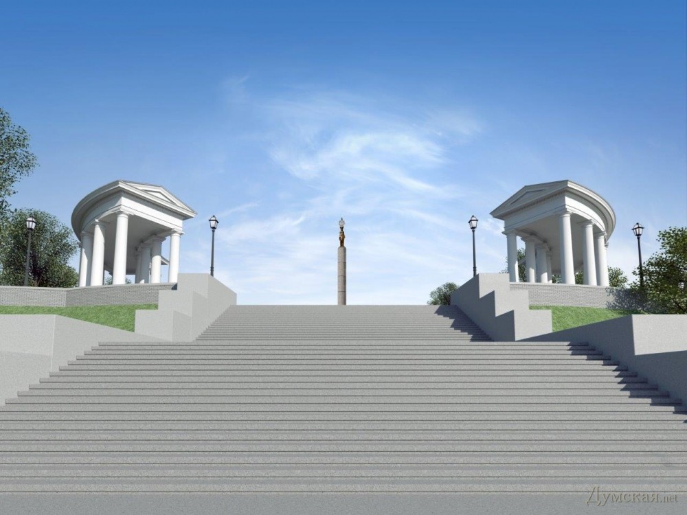 Думская сколько можно писать что это копия Потемкинской лестницы? Это Приморская лестница города Ильичевска — не копия! У нее иное от Потемкинской количество ступеней, иная ширина и другой архитектурный ансамбль. А похожа она на Одесскую только тем, что она лестница. Так что-же теперь все широкие лестницы в мире считать копиями! ?