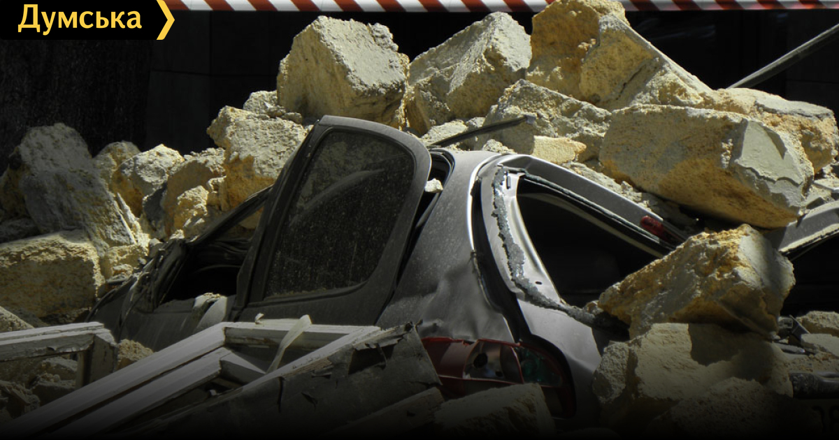 В центре Одессы стена двухэтажки рухнула на иномарку