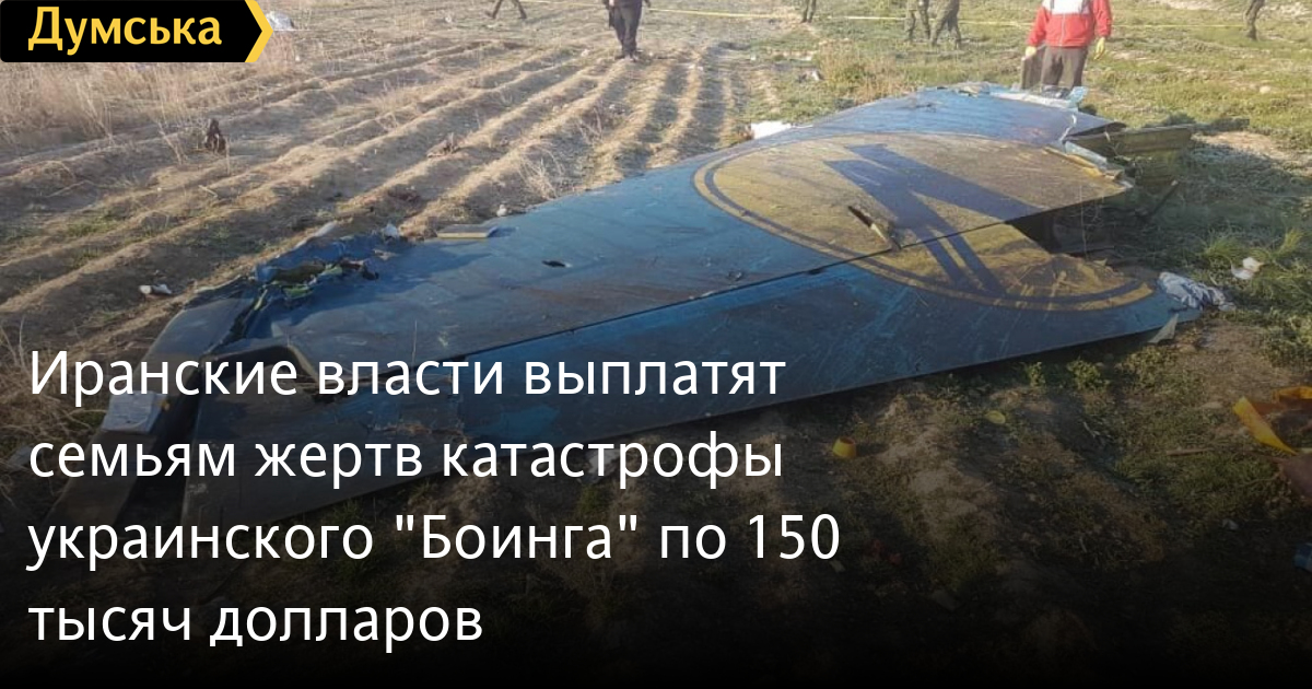 Иранские власти выплатят семьям жертв катастрофы украинского «Боинга» по 150 тысяч долларовПравительство Ирана решило выплатить всем семьям погибших в авиакатастрофе самолета Boeing737 авиакомпании МАУ по 150 тысяч долларов. Решение принято на сегодняшнем заседании правительства. Вице-президента по правовым вопросам Маджид Ансари заявил, что указанные суммы будут выплачены украинским и другим семьям погибших «в соответствии с международными нормами как только правительство Ирана получит необходимые отчеты и иные документы». Вице-президент предложил также произвести выплаты, как можно быстрее, до годовщины трагедии — 8 января 2021 года. Напомним, 8 января этого года сразу после вылета из аэропорта Тегерана, был сбит ракетой ЗРК «Тор-М1» самолет Boeing737 авиакомпании МАУ, следовавший рейсом Тегеран-Киев. В результате трагедии погибли все 176 человек, находившиеся на борту, — пассажиры и члены экипажа из семи стран. СМЕРТЬ РОССИЙСКИМ ОККУПАНТАМ! Заметили ошибку? Выделяйте слова с ошибкой и нажимайте control-enter |