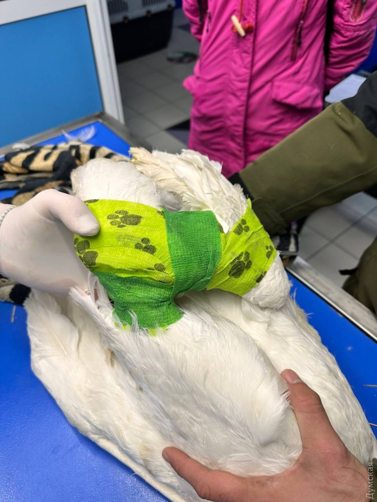 Крім того, неможливо встановити, коли саме ампутували крило: може тиждень тому, а може й кілька місяців. На птахах усе дуже швидко заживає, додав ветеринар. Наразі птаху наклали лангету, однак для операції лебідь ще надто слабкий.