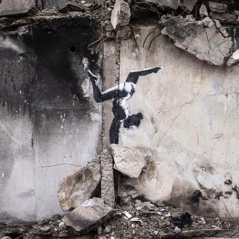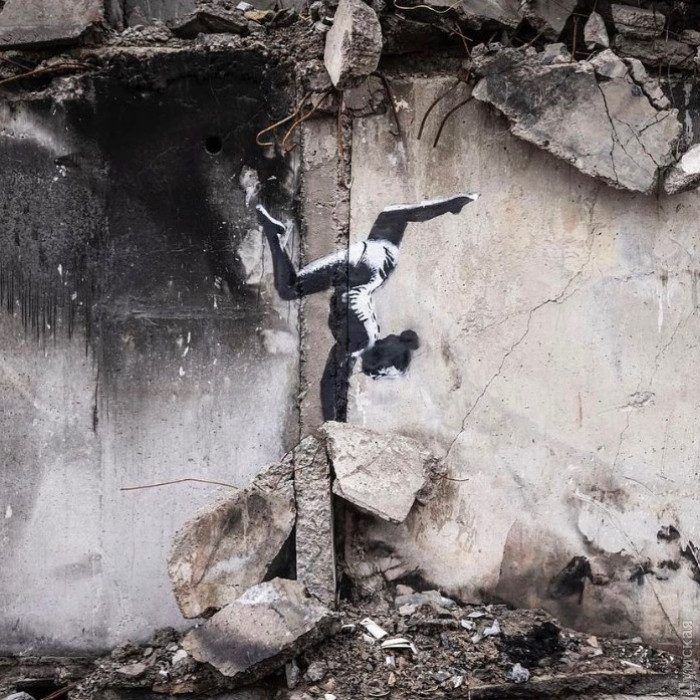 Покласти на лопатки путіна: в Україні з`явилися кілька графіті, автором яких може бути БенксіБританський художник Бенксі створив графіті на руїнах будівлі в Бородянці Київської області. Фото роботи стало першою публікацією в його Instagram із початку 2022 року.