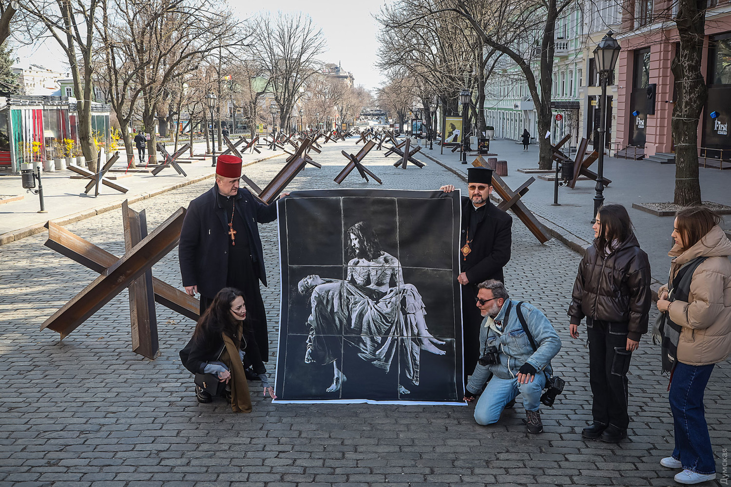 Итальянский фотохудожник подарил Одессе репродукцию своей картины — аллюзию на «Ватиканскую Пьету» МикеланджелоРепродукцию своей фотографии De secunda Pietate, изображающей Иисуса Христа и Богородицу, презентовал сегодня на Дерибасовской итальянский фотохудожник Данило Мауро Малатеста. Итальянец работает в технике амбротипии, использовавшейся на заре фотографии, а его картина является интерпретацией одной из самых известных скульптур Микеланджело Буонарроти «Оплакивание Христа» (Pietà vaticana). Наш современник поменял местами героев произведения — в отличие от оригинала, на фотографии Иисус Христос держит на руках Деву Марию. «Этот образ — это мое послание Одессе и Украине, — рассказал журналистам Данило Мауро Малатеста. — Иисус Христос держит Богородицу как образ человечества. Он берет в свои руки человечество, показывая любовь и милосердие всему миру». Картину из рук художника в Одессе приняли представители греко-католической церкви. «Это очень красивый символ поддержки от Итальянской Республики, от католической Италии нашему городу и нашей стране, — рассказал одесский экзарх УГКЦ Михаил Бубний. — Сегодня Одесса имеет возможность видеть вторую Пьяту — воскресший Христос держит Богородицу. Я верю, что это послание от итальянского народа будет для нас предвестником нашей победы и мира в Украине». Художник хочет разместить репродукцию в центре Одессы, чтобы она была доступна всем горожанам. СМЕРТЬ РОСІЙСЬКИМ ОКУПАНТАМ! Помітили помилку? Виділяйте слова з помилкою та натискайте control-enter |