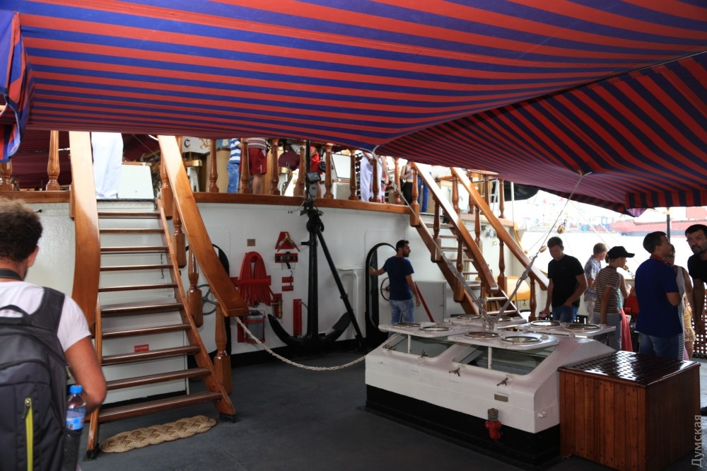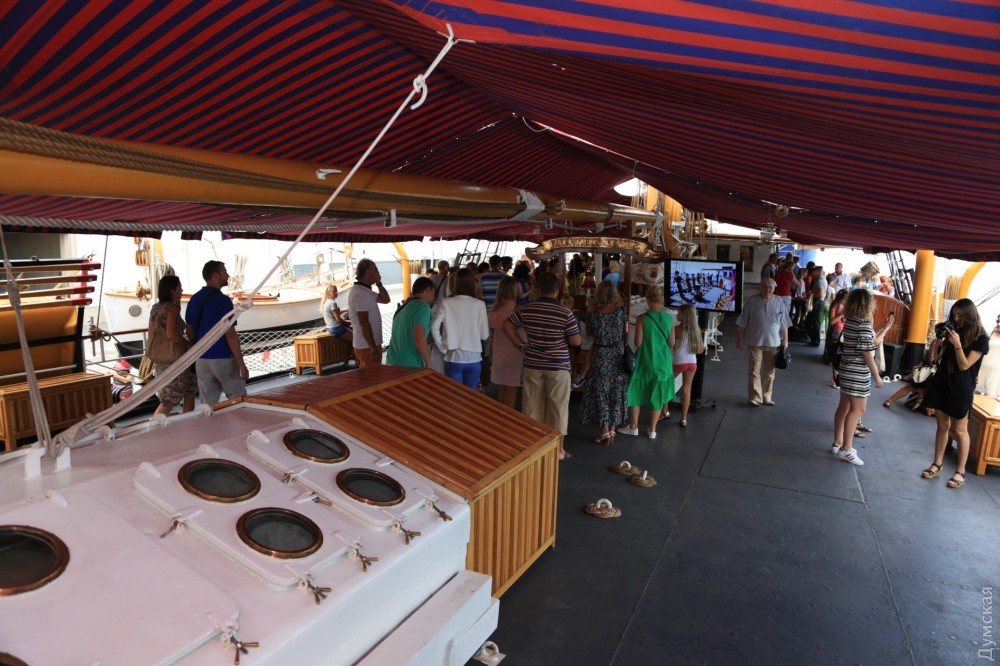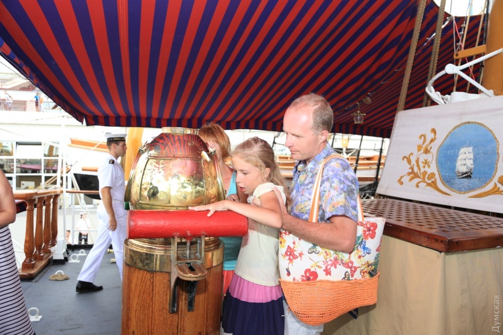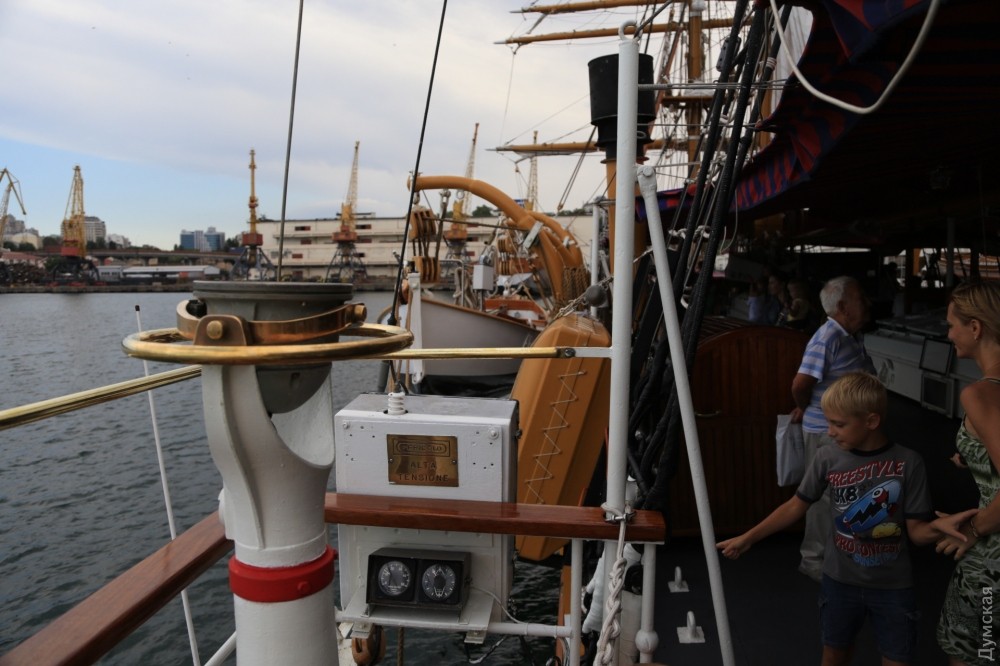 Сотни одесситов и гостей города уже побывали на борту трехмачтовой баркентины ВМС Италии «Палинуро», которая вчера ошвартовалась у 15 причала Морвокзала. Парусник стоит у причала под охраной украинского артиллерийского катера «Скадовск». Очередь из желающих попасть внутрь стоит не только за ограждением — добрая сотня гостей образовала очередь, пытаясь попасть внутрь ходовой рубки. Экипаж одет в парадную форму и очень приветлив. Все фотографируются и пытаются запечатлеть это редкое событие. «Палинуро» простоит в Одессе еще два дня. Фото — Сергей Смоленцев СМЕРТЬ РОСІЙСЬКИМ ОКУПАНТАМ! Помітили помилку? Виділяйте слова з помилкою та натискайте control-enter |