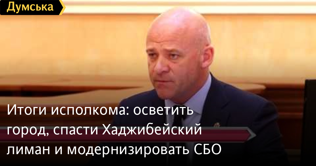 Итоги исполкома: осветить город, спасти Хаджибейский лиман и модернизировать СБООсветить город, спасти Хаджибейский лиман и наконец-то решить проблему сточных вод в Одессе. 31 марта на заседании исполкома городского совета рассмотрели пятьдесят вопросов. О самых главных из них расскажет Юлия Долганюк. СМЕРТЬ РОССИЙСКИМ ОККУПАНТАМ! Заметили ошибку? Выделяйте слова с ошибкой и нажимайте control-enter Думская ТВ. Сюжеты: