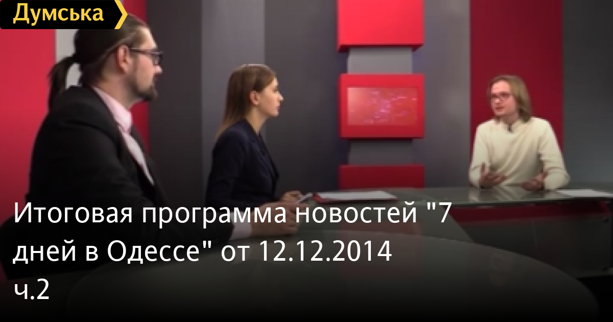 Итоговая программа новостей «7 дней в Одессе» от 12.12.2014 часть 2 СМЕРТЬ РОССИЙСКИМ ОККУПАНТАМ! Заметили ошибку? Выделяйте слова с ошибкой и нажимайте control-enter Думская ТВ. 7 Дней в Одессе: