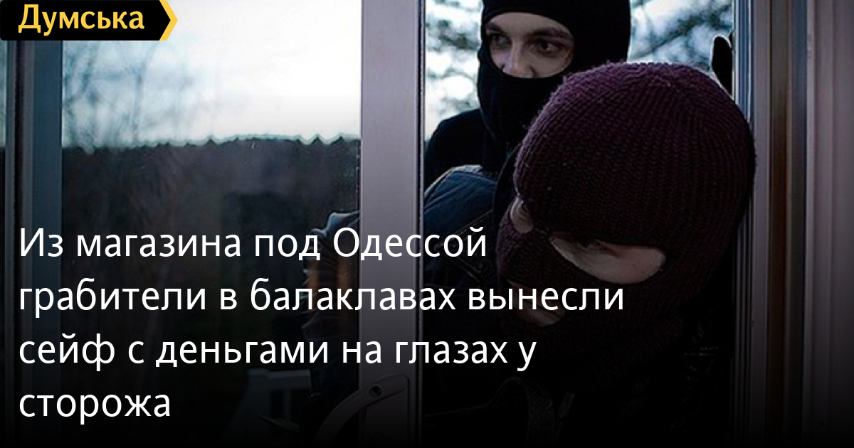 Из магазина под Одессой грабители в балаклавах вынесли сейф с деньгами на глазах у сторожаБесцеремонное ограбление магазина хозтоваров произошло ночью 5 ноября под Одессой в Великодолинском. Как рассказал «Думской» источник в прокуратуре, грабители приникли в помещение магазина, разбив окно. Внутри находился сторож, на глазах которого злоумышленники в балаклавах вынесли сейф с деньгами. Пожилая охранница попыталась помешать грабителям, но на ее замечания они не отреагировали. Предварительно установлено, что в сейфе находились 50 тысяч гривен. СМЕРТЬ РОССИЙСКИМ ОККУПАНТАМ! Заметили ошибку? Выделяйте слова с ошибкой и нажимайте control-enter Новости по этой теме: 12 января 2022: Харьковские станции метро ожидает масштабная проверка: в вестибюле подземки на площади Конституции рухнул потолок (фото) 8 января 2022: В Одессе из офиса фирмы выкрали сейф с внушительной суммой денег, золотом и пистолетом 27 декабря 2021: В лесополосе под Киевом нашли тело главврача из Ровенской области: по подозрению в убийстве задержаны таксист с приятелем 23 декабря 2021: В Киеве задержали подозреваемых мошенников, которые обманывали на свиданиях мужчин ради денег |