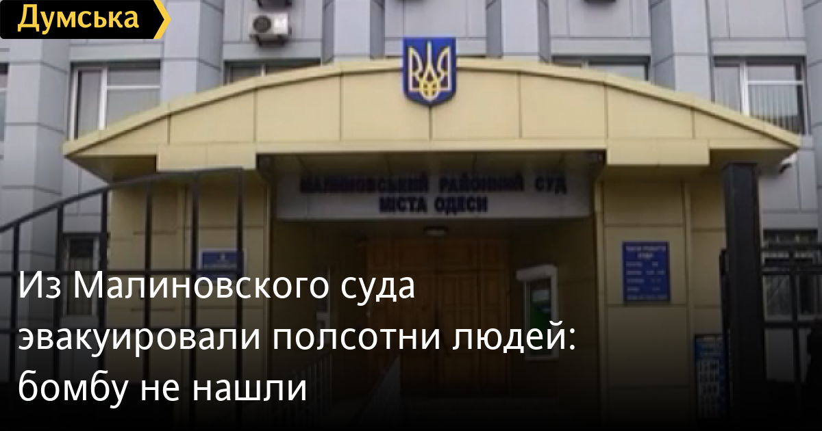 Взрывотехники и кинологи с собаками проверили здание Малиновского суда и прилегающую территорию на предмет взрывоопасных веществ. Взрывчатку не обнаружили. Как сообщила пресс-служба ГУНП, из здания суда по улице Стуса эвакуировали 50 человек. Как ранее сообщалось, анонимное сообщение о минировании поступило на спецлинию «102» 5 апреля около 10:20. СМЕРТЬ РОССИЙСКИМ ОККУПАНТАМ! Заметили ошибку? Выделяйте слова с ошибкой и нажимайте control-enter |
