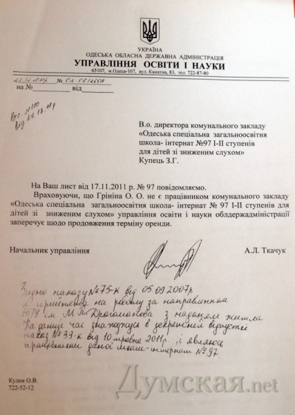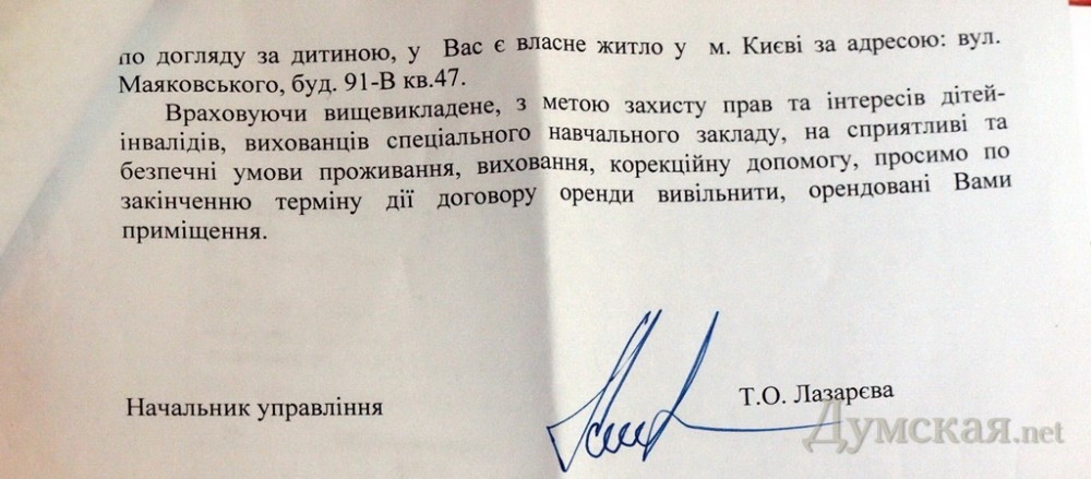 В то же время официальная позиция управления образования выглядит так: Анатолий Кованда не имел права заключать договоры на временное проживание, что находится в компетенции управления собственности областного совета, и был уволен именно за это.