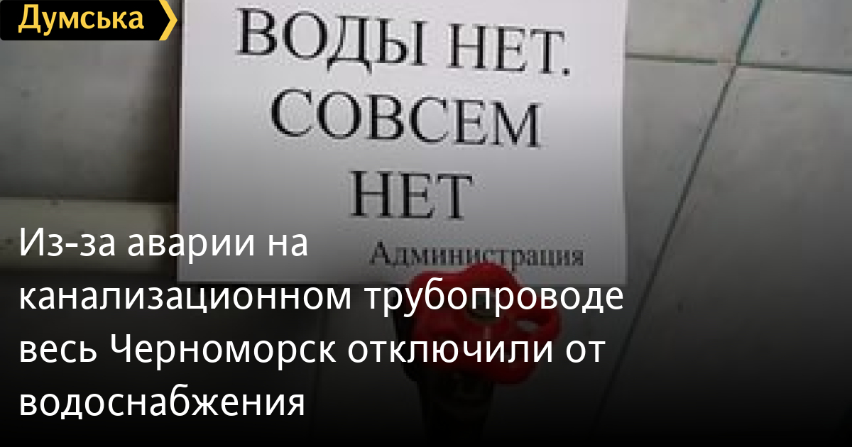 Из-за аварии на канализационном трубопроводе весь Черноморск отключили от водоснабженияСо вчерашнего вечера во всем Черноморске отключили воду. Как сообщили в КП «Черноморскводоканал», на главном канализационном трубопроводе произошла авария. Подачу водопроводной воды на город отключили для предотвращения прорыва канализационных стоков на поверхность. Для обеспечения населения водой с 06:30 организован подвоз технической воды на улицы города. Машины с технической водой размещены по следующим адресам: улица Данченко угол проспект Мира; проспект Мира, 14; улица Спортивная, 6А; улица Парусная, 4А. Для обеспечения питьевой водой работают артезианские скважины по адресу: проспект Мира, 15Ж и улица Труда, 17. Водоснабжение обещают возобновить в середине дня 23 сентября. СМЕРТЬ РОССИЙСКИМ ОККУПАНТАМ! Заметили ошибку? Выделяйте слова с ошибкой и нажимайте control-enter |