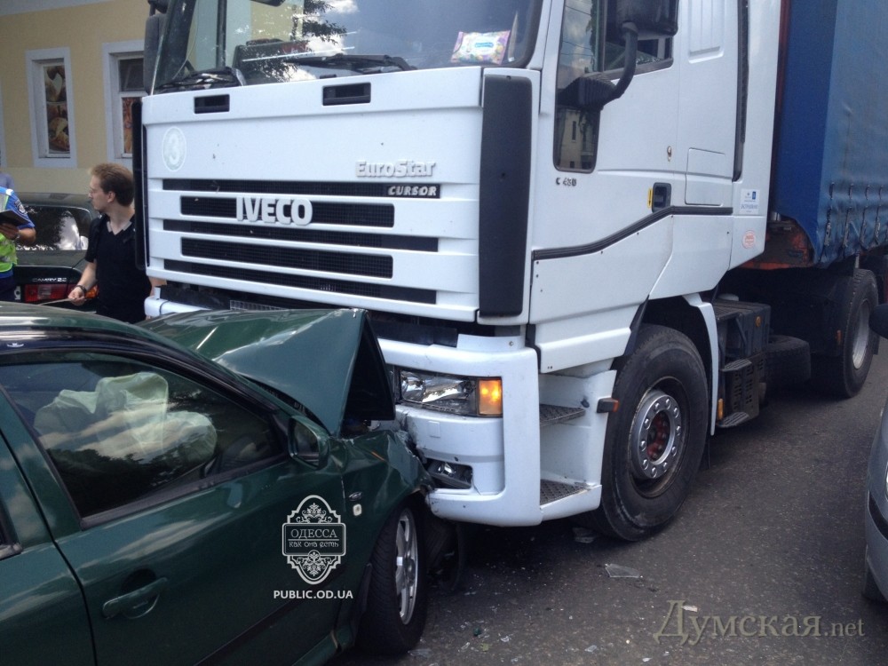Авария с участием двух легковых автомобилей и одного грузовика произошла днем 5 августа на улице Черноморского казачества.Как сообщают очевидцы, водители легковушек едва не столкнулись между собой возле остановки «Сахарный завод». Пытаясь увернуться, один из них врезался в фуру, второй – в стену. На улице образовался затор. Информации о пострадавших пока нет.Фото сайта «public.od.ua»