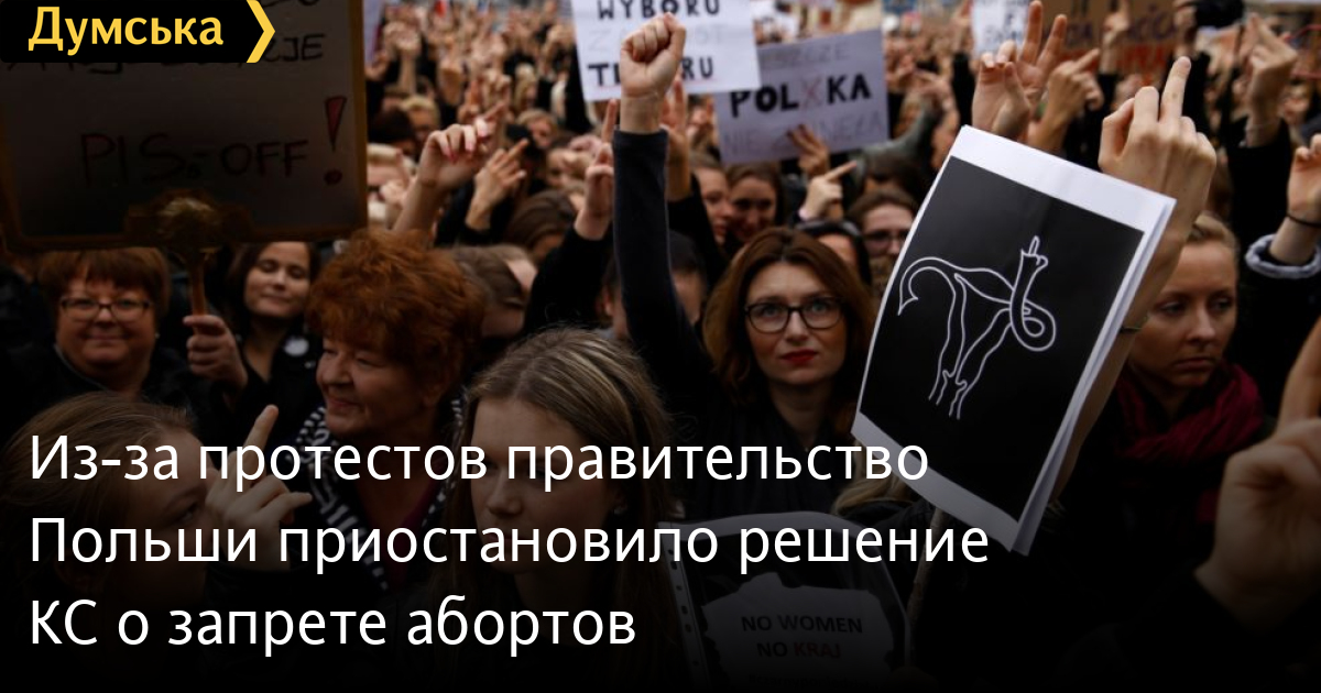 Из-за протестов правительство Польши приостановило решение КС о запрете абортовПравительство Польши решило пока не внедрять решение Конституционного суда страны, которое фактически запретило аборты даже в случае обнаружения дефектов у плода или неизлечимой болезни. Об этом сообщило Sky News со ссылкой на главу канцелярии премьер-министра Михаила Дворчика. Соответствующее решение было принято из-за массовых протестов, которые начались после принятия данного решения. «Сейчас идет дискуссия, и было бы хорошо выделить немного времени на диалог и поиск новой позиции в этой сложной ситуаций, которая вызывает эмоции», — заявил Михаил Дворчик. Он отметил, что премьер страны Матеуш Моравецкий готов начать переговоры с протестующими и парламентской оппозицией, чтобы выйти из сложившейся ситуации. В свою очередь президент Польши Дуда ранее предложил принять новый закон, который разрешит аборты при наличии дефектов у плода, которые угрожают жизни. Исключением должен стать синдром Дауна. СМЕРТЬ РОССИЙСКИМ ОККУПАНТАМ! Заметили ошибку? Выделяйте слова с ошибкой и нажимайте control-enter |