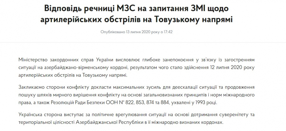 Из-за заявления МИД о конфликте с Азербайджаном посольство Украины в Ереване облили борщомПротестующие в Ереване облили здание посольства Украины борщом после заявления МИД о том, что Киев выступает за политическое урегулирование ситуации на основе соблюдения суверенитета и территориальной целостности Азербайджана в ее международно-признанных границах. Об этом сообщает «Европейская правда» со ссылкой на издание Panorama. По мнению активистов, подобными словами украинское ведомство пытается вбить клин в отношениях между Арменией и Украиной. Также протестующие призвали Украину не провоцировать и «не поддерживать агрессора». Отметим, заявление МИД появилось после обстрелов на азербайджанско-армянской границе 12 июля. Четверо азербайджанских военнослужащих были убиты. Армения и Азербайджан обвинили друг друга в провоцировании инцидента в Товузском районе недалеко непризнанной Нагорно-Карабахской республики (НКР), которая занимает территорию, оспариваемую Азербайджаном и Арменией. В заявлении украинского МИД прозвучал призыв к обеим сторонам «приложить максимальные усилия для деэскалации ситуации и продолжения поиска путей мирного решения конфликта на основе общепризнанных принципов и норм международного права, а также резолюций Совета Безопасности ООН № 822, 853, 874 и 884, принятые в 1993 году». «Украинская сторона выступает за политическое урегулирование ситуации на основе соблюдения суверенитета и территориальной целостности Азербайджанской Республики в ее международно признанных границах», — говорится в заявлении МИД. Вчера в связи с этим заявлением украинского посла вызвали в МИД Армении. СМЕРТЬ РОСІЙСЬКИМ ОКУПАНТАМ! Помітили помилку? Виділяйте слова з помилкою та натискайте control-enter |