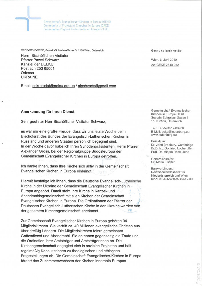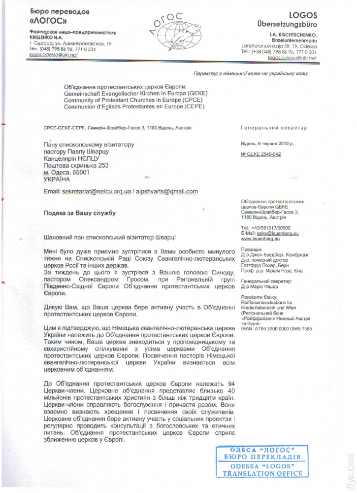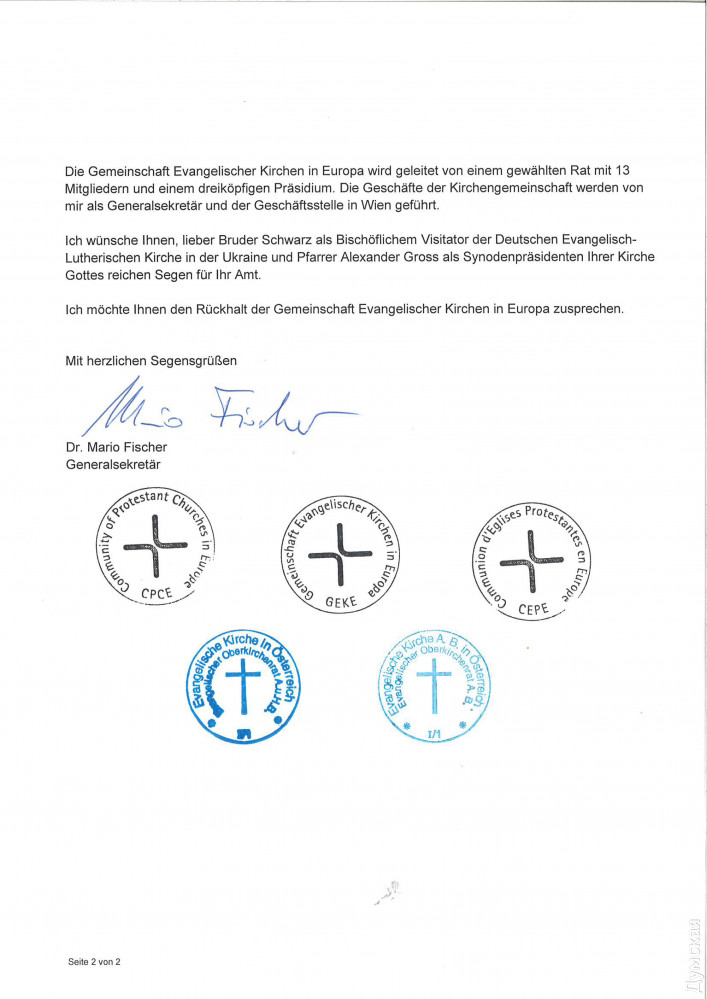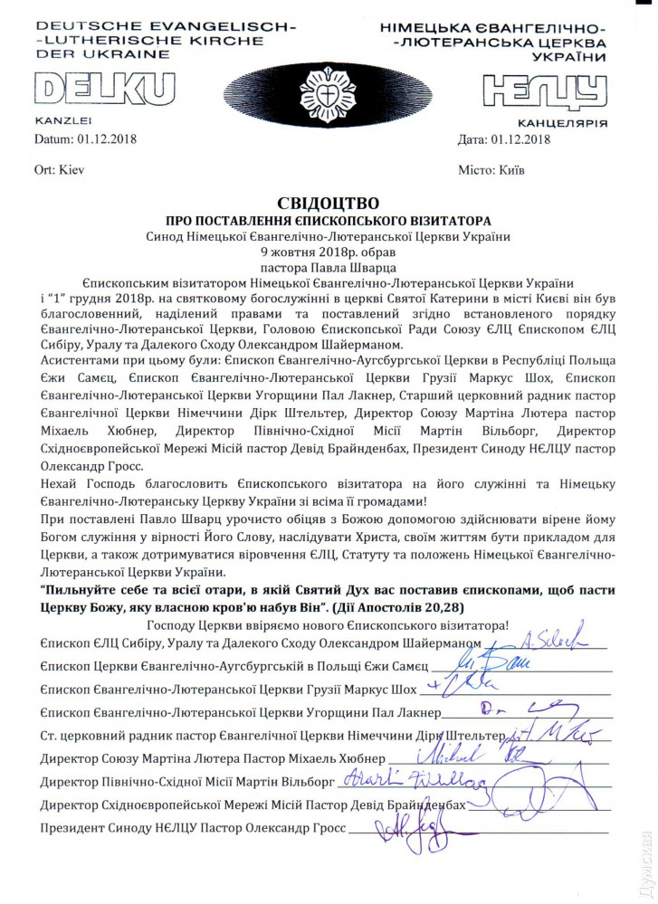 У одесских лютеран по-прежнему двоевластие: новый епископ не может приступить к исполнению обязанностейНемецкую евангелическо-лютеранскую церковь Украины с центром в Одессе (собор Святого Павла на Новосельского) продолжает лихорадить. Спустя год после своего избрания синодом новый глава религиозной организации епископ Павел Шварц все еще не может приступить к своим прямым обязанностям. Как рассказали «Думской» сторонники Шварца, власть в НЕЛЦУ по-прежнему удерживает низложенный руководитель церкви Сергей Машевский, который, впрочем, считает себя легальным епископом. «Он удерживает руководство над церковным управлением, органом взаимодействия с государством Украина. Одновременно он ведет юридическую работу против общин. Отняты помещения в Петродолинском, Харькове, Кривом Роге, Бердянске и Полтаве. Были попытки и угрозы общинам в Белой Церкви и Запорожье. Существует огромный риск распродажи недвижимого и движимого имущества (у общин и пасторов отняты все служебные автомобили). Формально его поддерживает ряд боящихся потерять свое имущество общин и лично заинтересованных лиц», — отмечается в письме членов синод. Они призывают другие религиозные организации и государственные органы «обратить внимание на действия господина Машевского Сергея и не содействовать ему в его антицерковных и противозаконных действиях». Напомним, конфликт в НЕЛЦУ тянется с 2014 года — с тех пор, как ее возглавил Сергей Машевский. «За время своей работы он успел изгнать из церкви 2/3 служителей, более половины всех общин, занимается захватом зданий и распродает имущество, — утверждает бывший пастор общины села Петродолинское Александр Гросс. – Он выстраивает вертикаль власти, хотя протестантская церковь по своей структуре управления всегда была демократической. Все комитеты, которые раньше контролировали расход средств епископатом, упразднены, а контакты с иностранными донорами, из Германии, разорваны». Лютеране из ФРГ, и в самом деле, прекратили оказывать финансовую помощь своим соотечественникам и единоверцам в Украине. Это ставит под угрозу сохранность главного лютеранского собора страны, одесской кирхи. Сам Машевский, впрочем, считает, что на него ополчились из-за принципиальной позиции. По словам епископа (бывшего?), возглавив церковь, он пресек воровство средств общины, которое якобы процветало при прежнем предстоятеле, немце Уланде Шпалингере. Это, мол, и породило оппозицию. 9 октября в Одессе прошло заседание синода НЕЛЦУ, на котором большинство общин проголосовало за смещение Машевского. Вместо него предстоятелем церкви избрали 36-летнего пастора из Харькова Павла Шварца. Сам Машевский на заседании не присутствовал якобы из-за проблем со здоровьем. Более того, он не дал провести его в здании управления церкви: двери были просто закрыты. Представителям общин пришлось перенести собрание в другое помещение. Решения синода низложенный епископ не признал, хотя регистрационная служба внесла соответствующие изменения (относительно главы организации) в реестр предприятий и организаций. По его словам, заседание было проведено с нарушением устава церкви. Машевский через регистратора из области добился восстановления прежней информации в реестре и собрал другой синод, уже в Днепре. В нем приняли участие только его сторонники, кото
