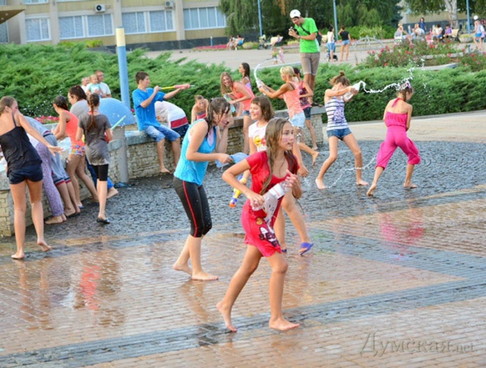 Водные бои в один из жарких дней 12 августа устроили жители Южного. Как сообщает агентство «Rе:пост», договорившись заранее в соцсетях несколько десятков школьников и молодых людей собрались у фонтанов в центре города. Организовали развлечение Кристина Савельева и Александра Карпунина. Идея мероприятия проста — получить максимум удовольствия в эти знойные и размеренные летние будни. Участвовать могли и дети, и взрослые. Любители водных процедур пришли вооруженные водными пистолетами, брызгалками и обычными пластиковыми бутылками. Несколько детей принесли с собой стеклянные банки, однако организаторы запретили их использовать в целях безопасности. Перед началом боев участники разделились на две команды — одним на лице нарисовали красные полоски, а другим фиолетовые. Каждая из команд расположилась у отдельного фонтана. И понеслось. Развлечение получилось на славу – сухим не ушел никто. «Я очень рада, что пришли дети. С ними очень круто играть — это море удовольствия, позитива, они очень активные, их не догнать. Я думаю, что для первого раза все удачно, все остались довольные, все остались мокрые, как и было запланировано. У нас было такое правило, чтобы никто не лез в фонтан, с головой (душой и телом) и, в принципе, дети соблюдали это. Были шарики с водой, у нас было правило — не бросать их в голову, а бросать в ноги. И хочу сказать большое спасибо руководству ФСК «Олимп», что разрешили нам тут провести мероприятие», — рассказала Кристина Савельева. СМЕРТЬ РОССИЙСКИМ ОККУПАНТАМ! Заметили ошибку? Выделяйте слова с ошибкой и нажимайте control-enter |