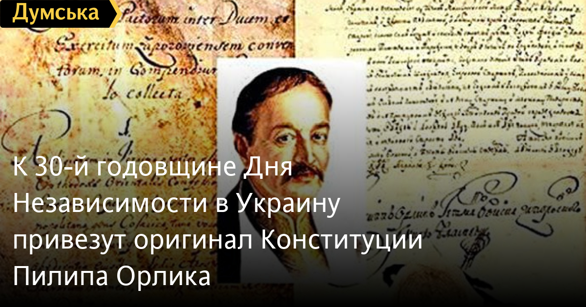 К 30-й годовщине Дня Независимости в Украину привезут оригинал Конституции Пилипа ОрликаК 30-й годовщине Дня Независимости в Украину впервые привезут оригинал Конституции Пилипа Орлика. Об этом в Telegram сообщил министр культуры Украины Александр Ткаченко. По его словам, оригинал документа можно будет увидеть уже летом, а потом он вернется обратно в Швецию. Выставлять Конституцию будут в заповеднике «София Киевская», где ее смогут увидеть все желающие. «Документ, который крепко связан с историей Швеции и нашей историей времен казачества, впервые вернется в нашу страну. Но уже сильную, самобытную и независимую от других», — написал Ткаченко. Он также поблагодарил министра культуры Швеции Аманду Линд, Национальный архив Швеции, команду минкульта Украины, МИД Украины, Посольство Украины в Швеции и «Софию Киевскую» за то, что дадут возможность украинцам увидеть оригинал уникального документа на латинском языке. СМЕРТЬ РОССИЙСКИМ ОККУПАНТАМ! Заметили ошибку? Выделяйте слова с ошибкой и нажимайте control-enter |