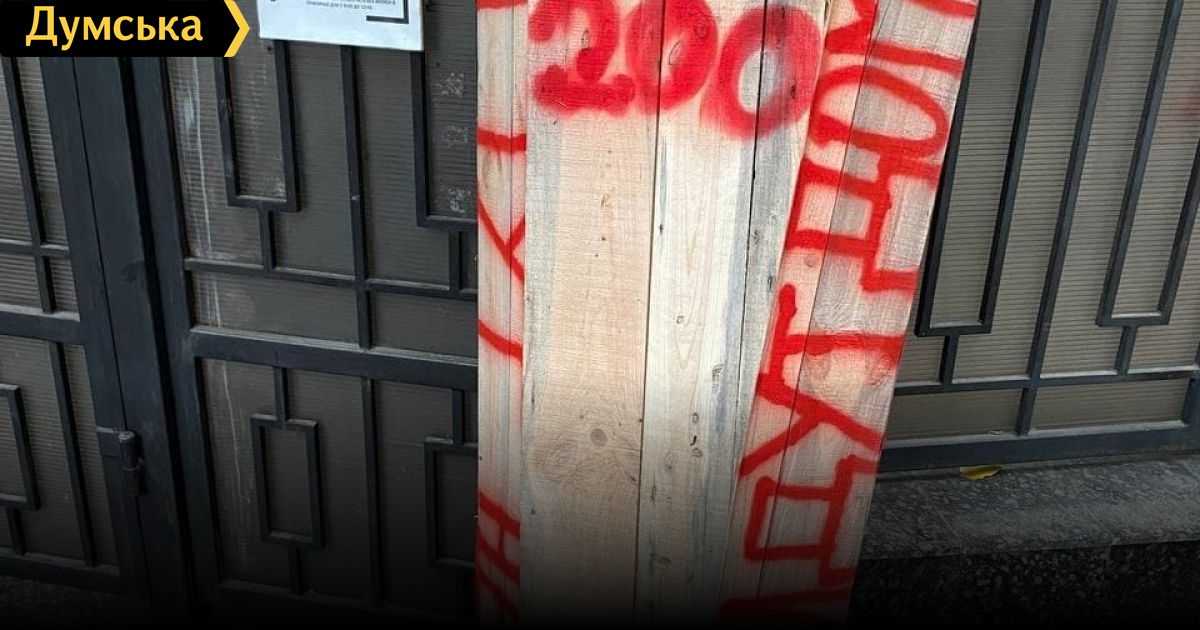 Дешевый сосновый гроб с надписями «Вам тут не рады», «Груз 200», «Русские идут домой» украсил сегодня вход в генеральное консульство Российской Федерации в Одессе, расположенном на Гагаринском плато. Его принес известный одесский активист Демьян Ганул, передает корреспондент «Думской».