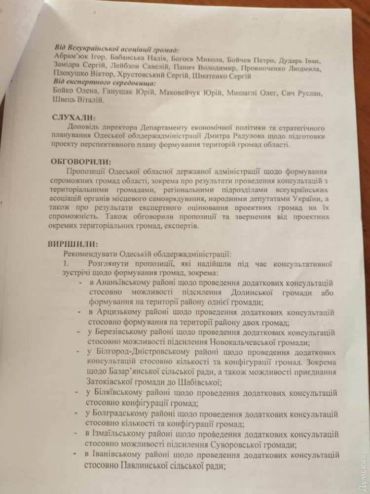 В Минрегионразвития рекомендовали предусмотреть территорию для развития Одессы при обсуждении формирования территориальных громад в Лиманском районе. Об этом говорится в протоколе заседания по итогам обсуждения перспективного плана формирования территориальных громад Одесской области, которое прошло 17 января в ведомстве. Одесская облгосадминистрация должна не позднее 28 января подать в Кабмин доработанный перспективный план формирования территориальных громад в Одесской области. О каких селах идет речь, точно не известно, но ранее в планах мэрии по расширению города фигурировал Крыжановский сельсовет. Напомним, в декабре Одесский горсовет обратился в Кабмин с просьбой расширить границы города за счет 26 сел. СМЕРТЬ РОСІЙСЬКИМ ОКУПАНТАМ! Помітили помилку? Виділяйте слова з помилкою та натискайте control-enter |
