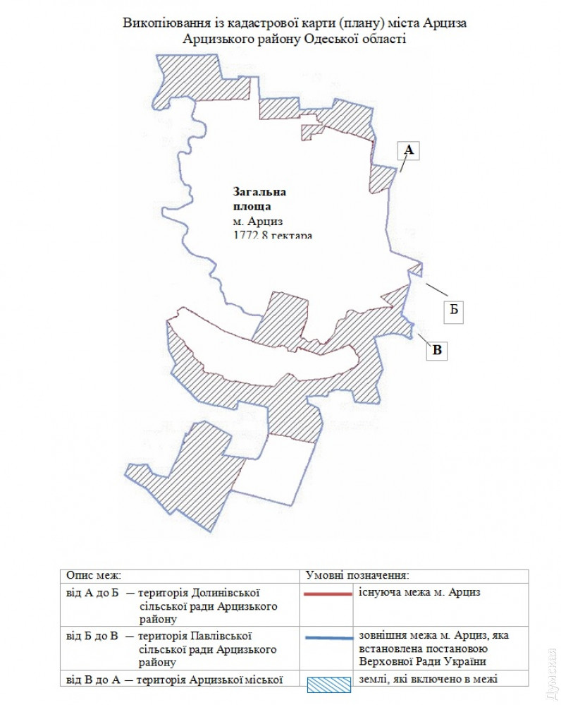 Площадь города вырастет на 621,57 га - с 1151,23 до 1772,8 га. В результате будут объединены отделенные друг от друга части населенного пункта (Арциз, Арциз-2, Червоноглинка, Комсомолец), что должно дать толчок его развитию.