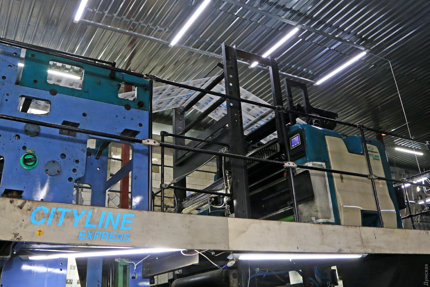 Самый интересный и зрелищный, наверное, газетный цех. Создается впечатление, что именно здесь рождаются новости. Можно часами смотреть, как большая машина на пятиметровой высоте наносит печать на бесконечную, стремительно бегущую газетную ленту, которая затем спускается вниз, режется на стандартные развороты, превращаясь в привычное многостраничное издание.
