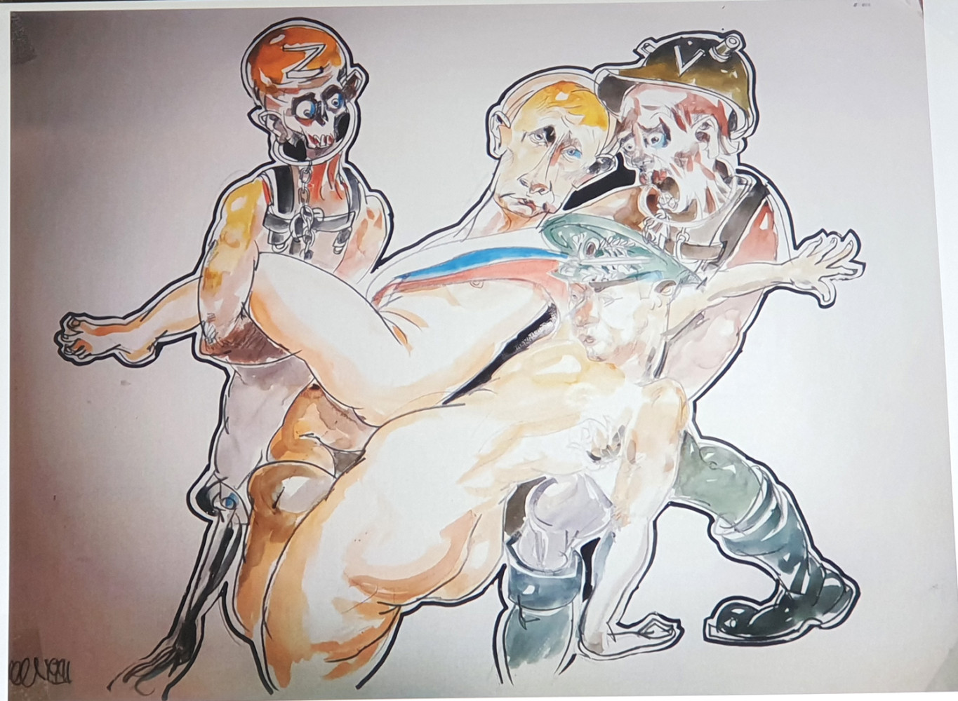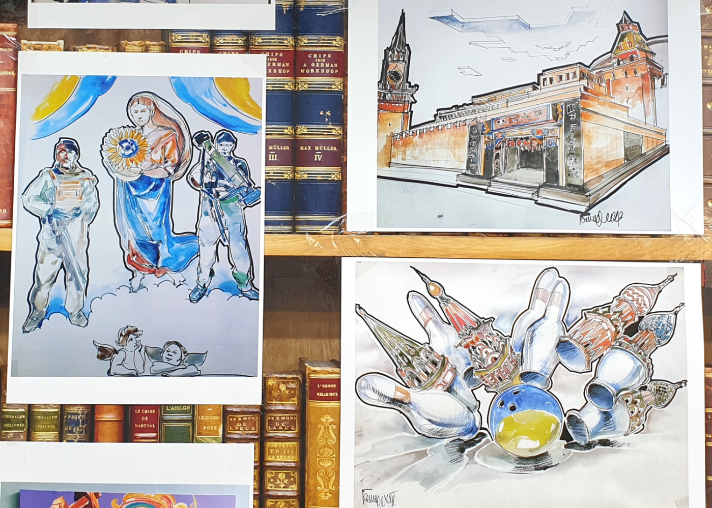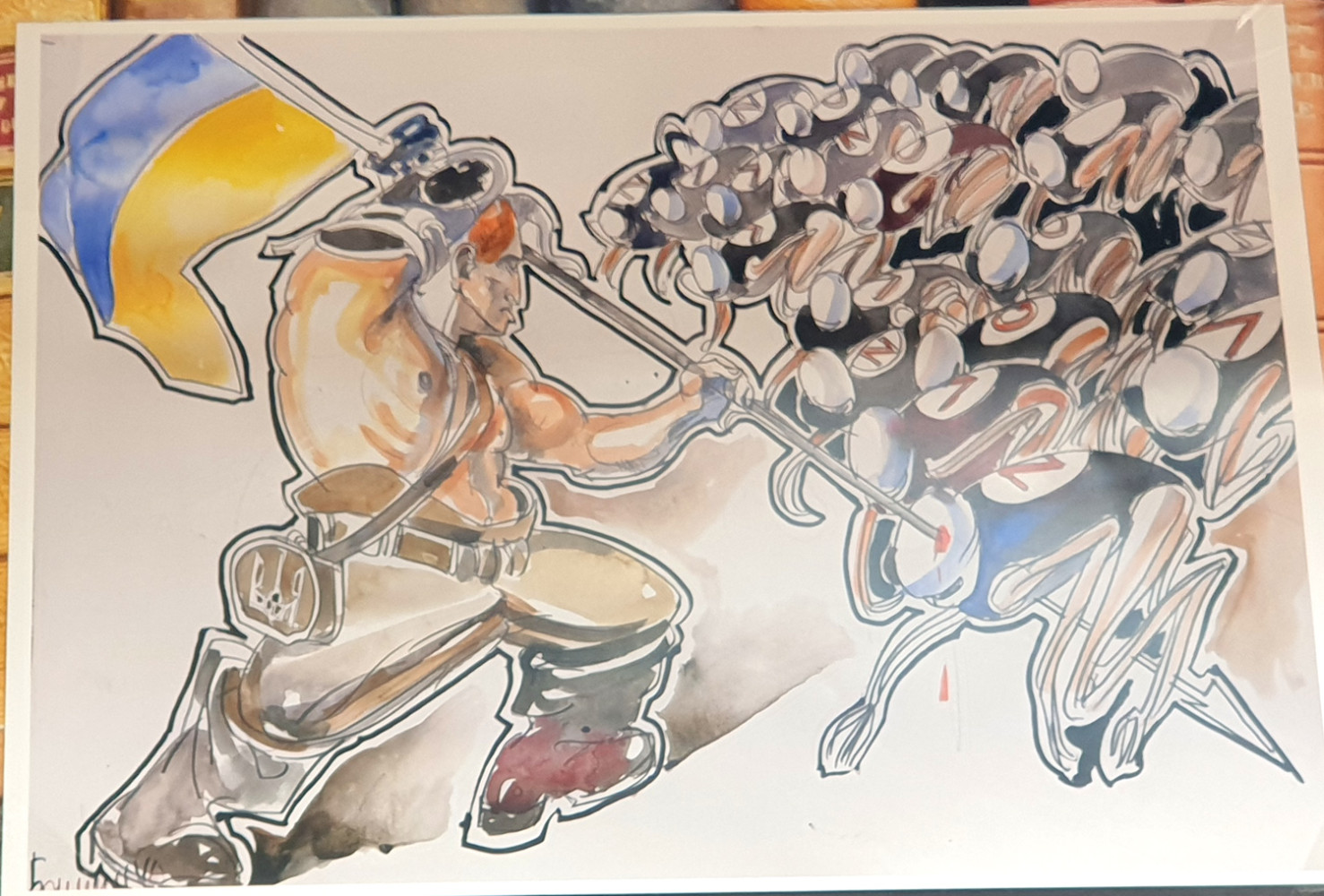 Как мертвые хватают живых: на одесской «Книжке» появились антивоенные плакаты Романа БончукаНовая выставка антивоенного украинского искусства на книжном рынке, что на Александровском бульваре, знакомит со свежими произведениями художника из Ивано-Франковска Романа Бончука, автора проекта первого в Украине музея Небесной сотни, а также гигантского полотна «Хроники Украины-Руси». Свое отношение к происходящему сегодня мастер объясняет так: идет война мертвых символов, подпитываемая живой плотью и кровью. Представленные на выставке плакаты исследуют взаимодействие живого и мертвого, а выводы из увиденного каждый зритель сделает самостоятельно. Автор — Ирэн Адлер, фото Александра Синельникова СМЕРТЬ РОСІЙСЬКИМ ОКУПАНТАМ! Помітили помилку? Виділяйте слова з помилкою та натискайте control-enter |