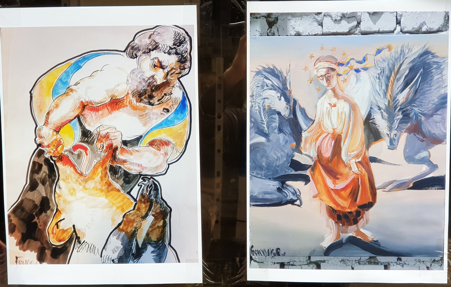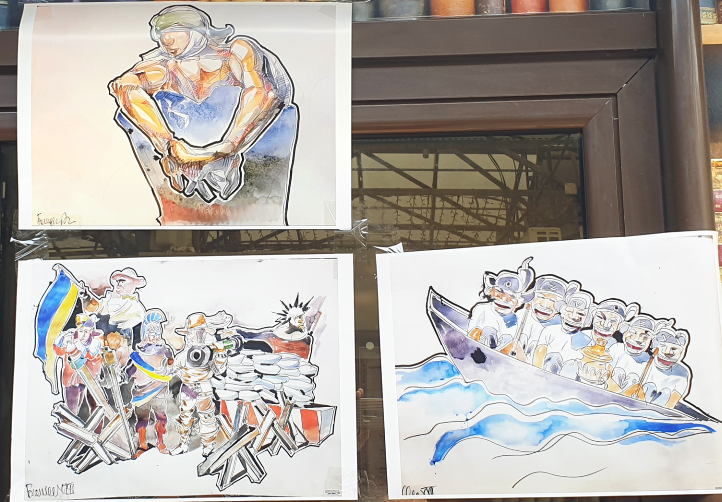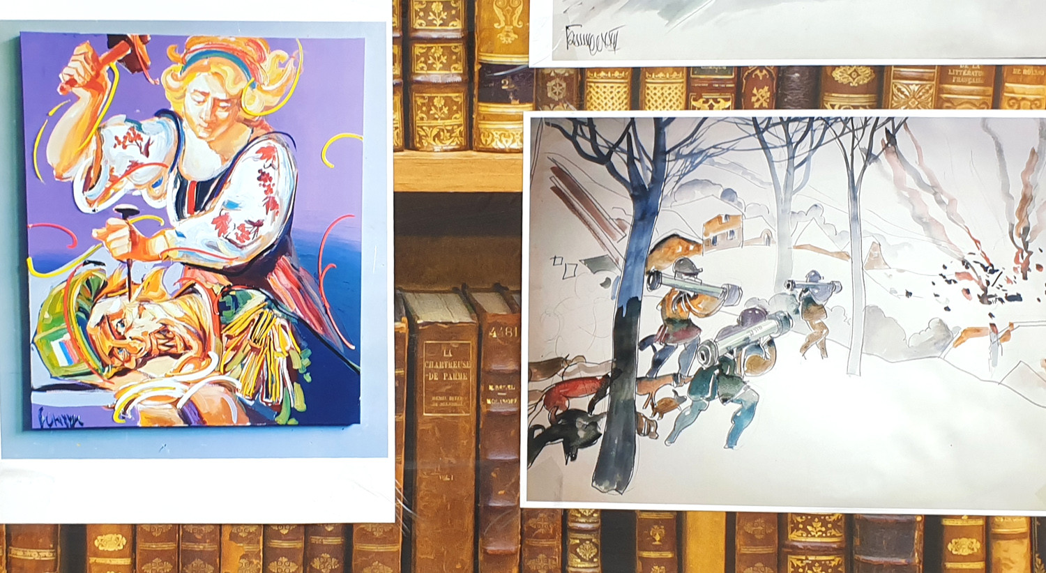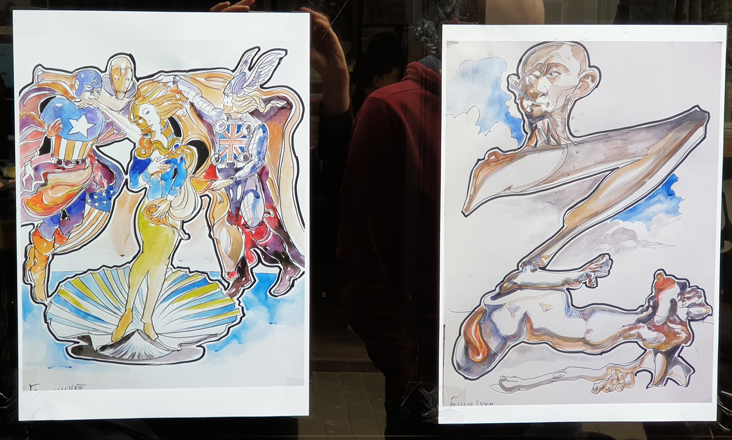 Как мертвые хватают живых: на одесской «Книжке» появились антивоенные плакаты Романа БончукаНовая выставка антивоенного украинского искусства на книжном рынке, что на Александровском бульваре, знакомит со свежими произведениями художника из Ивано-Франковска Романа Бончука, автора проекта первого в Украине музея Небесной сотни, а также гигантского полотна «Хроники Украины-Руси». Свое отношение к происходящему сегодня мастер объясняет так: идет война мертвых символов, подпитываемая живой плотью и кровью. Представленные на выставке плакаты исследуют взаимодействие живого и мертвого, а выводы из увиденного каждый зритель сделает самостоятельно. Автор — Ирэн Адлер, фото Александра Синельникова СМЕРТЬ РОСІЙСЬКИМ ОКУПАНТАМ! Помітили помилку? Виділяйте слова з помилкою та натискайте control-enter |