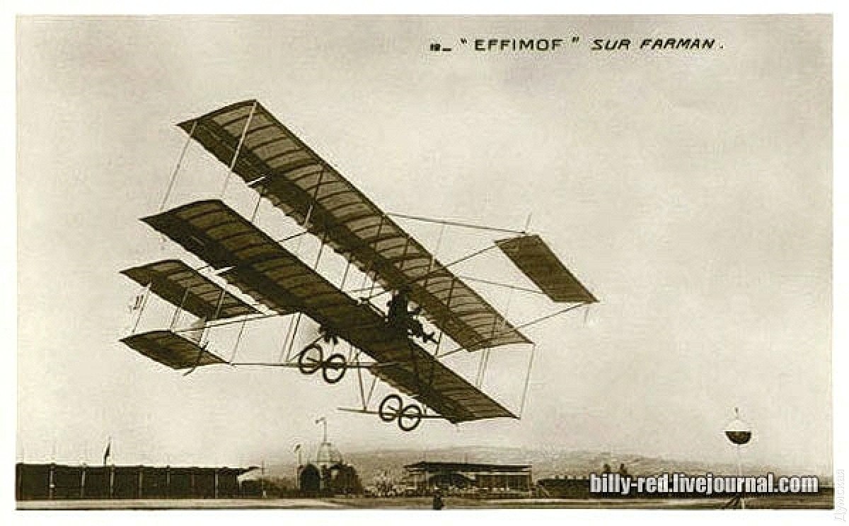 Параллельно с полетами американцев несколько европейцев в 1906-1908 году пытались поднять в воздух свои этажерки. Самым удачным оказался Анри Фарман, которому удалось продержаться в воздухе целых 74 секунды. В июне 1908 года летчик Делагранж продержался 18 минут, но Райты побили и этот рекорд, отлетав осенью того же года полтора часа, а в декабре – более двух часов. В общем, на фоне этих скромных успехов, 50-секундный полет Ефимова на планере уже не кажется детским, и становится понятно, что Одесса в те времена шла в ногу с Европой и Америкой.
