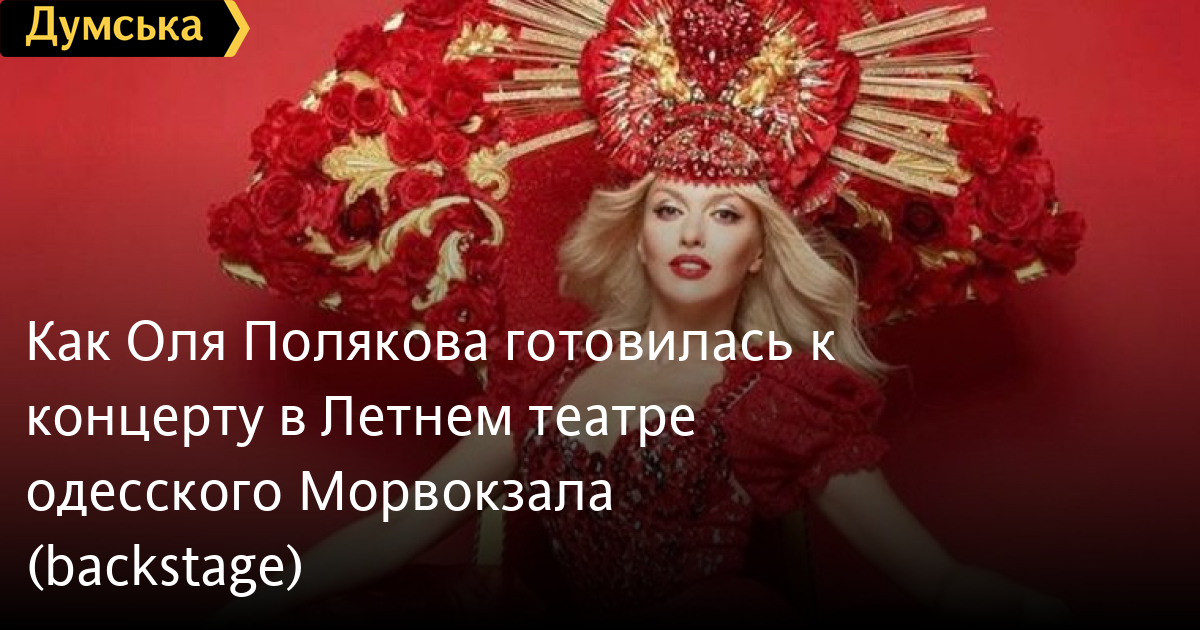 Как Оля Полякова готовилась к концерту в Летнем театре одесского Морвокзала (backstage)Кто такие поляковщики, сколько занимает предконцертный грим Поляковой, сколько кокошников в коллекции у певицы. Об этом и не только в новом видео для проекта #backstage. СМЕРТЬ РОССИЙСКИМ ОККУПАНТАМ! Заметили ошибку? Выделяйте слова с ошибкой и нажимайте control-enter |